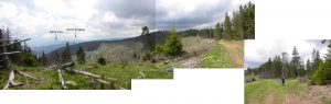 Prindem și culmea, în șaua de după vârful Beneșului, …