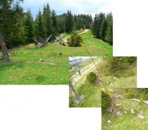 Coborâm puțin pe cumpăna de ape dintre izvoarele Asodului (>Bistricioara) și cele ale Pârâului Roșu (>Rezu Mare>Putna>Bistricioara) …