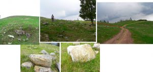 … suim ușor pe culmea Asodului Mare, unde ar fi existat cândva o cetate (dacică ?) ! Ne și atrage atenția un mic val circular de pământ, la baza căruia distingem resturile unui zid de piatră; …