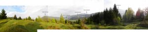 De aici schimbăm brusc direcția spre est. Un drum ne conduce, de-a coasta, pe versantul stâng al Pentecului …