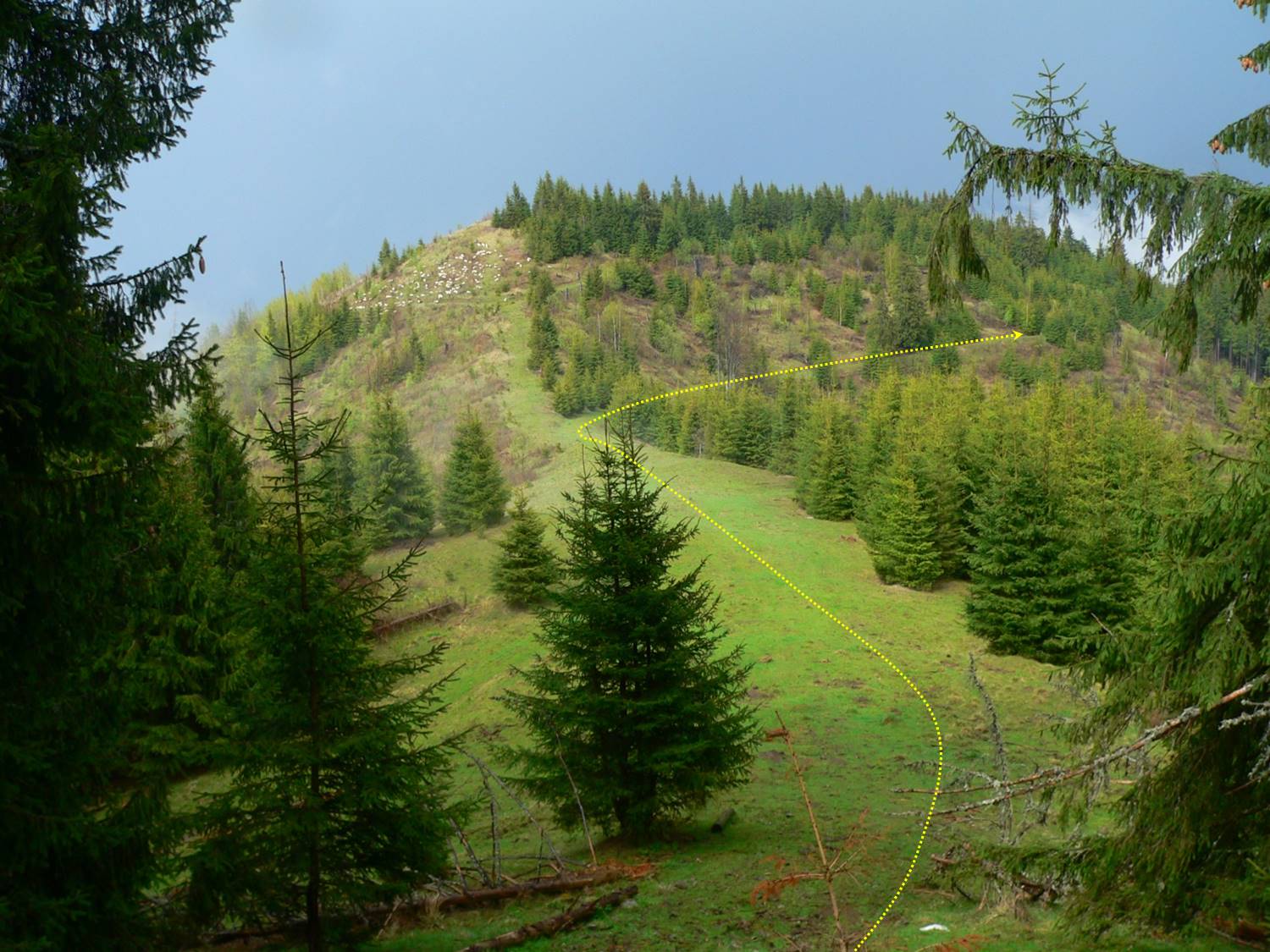 Pe Capul Corhanei – ultimul vârf al culmii – pădurea e … corhănită toată; și ne mai dă … târcoale și ploaia !