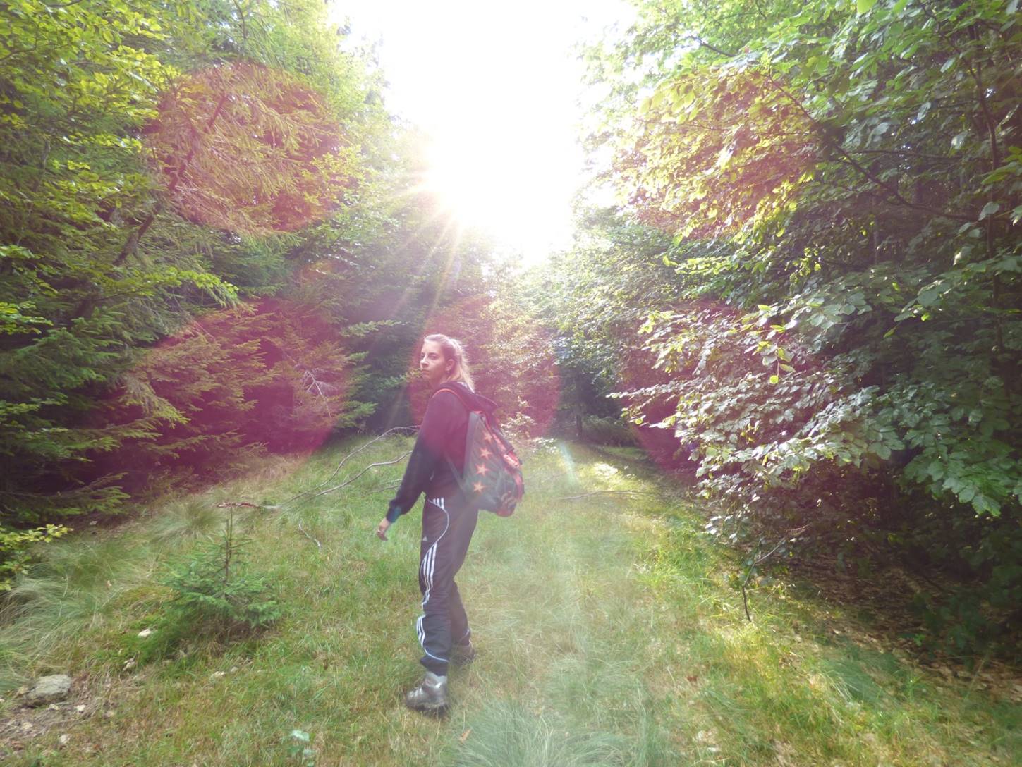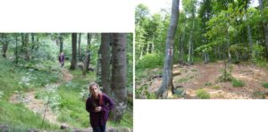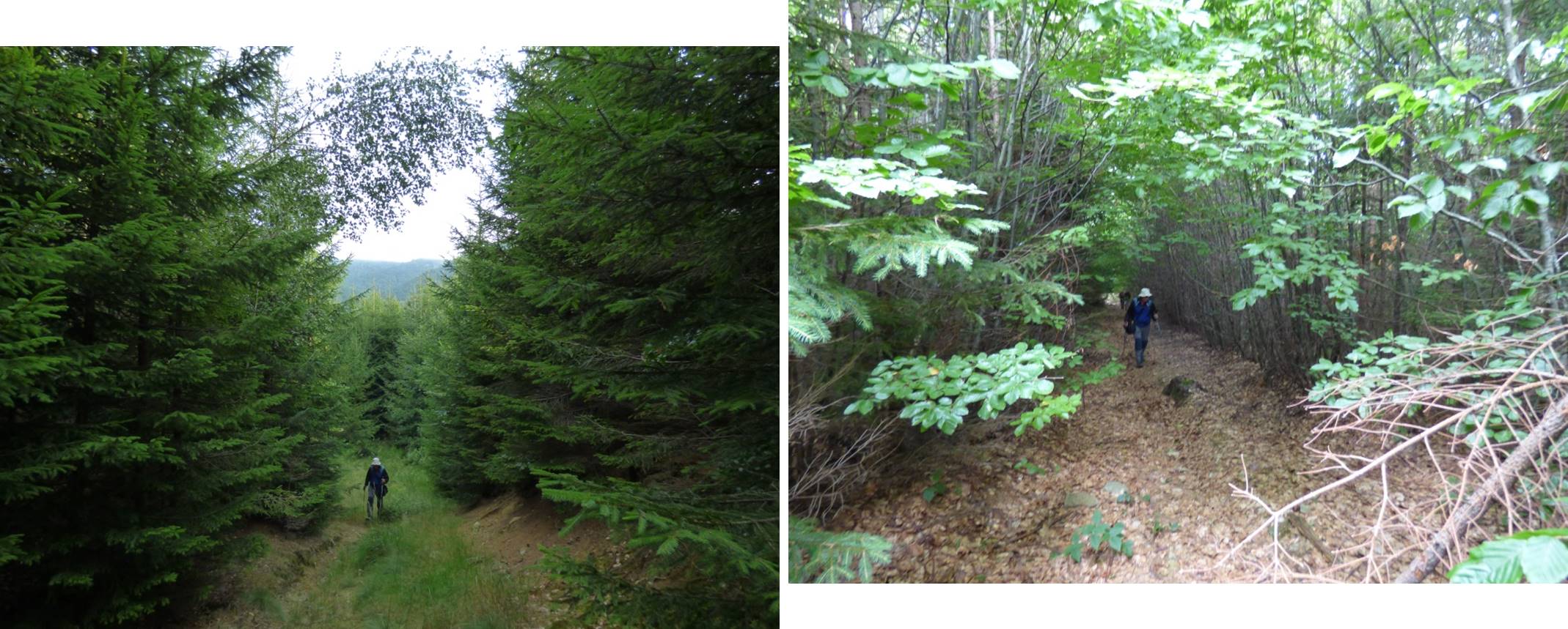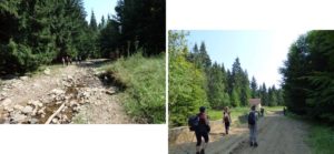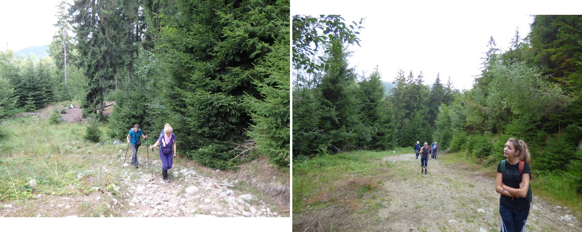 Astfel, imediat după ce ieșim într-o poiană largă, traversând-o, dăm de un drum de tractor …