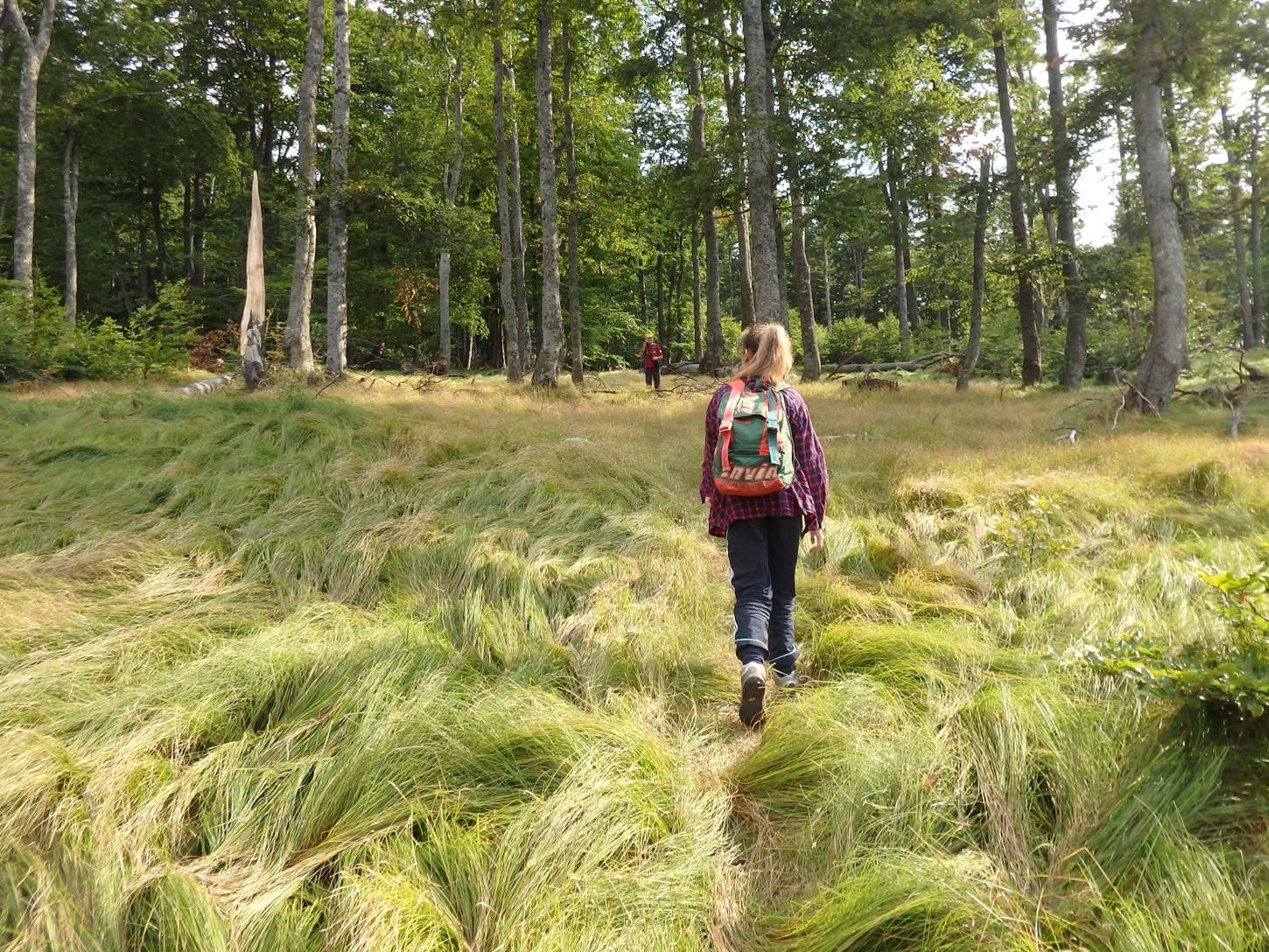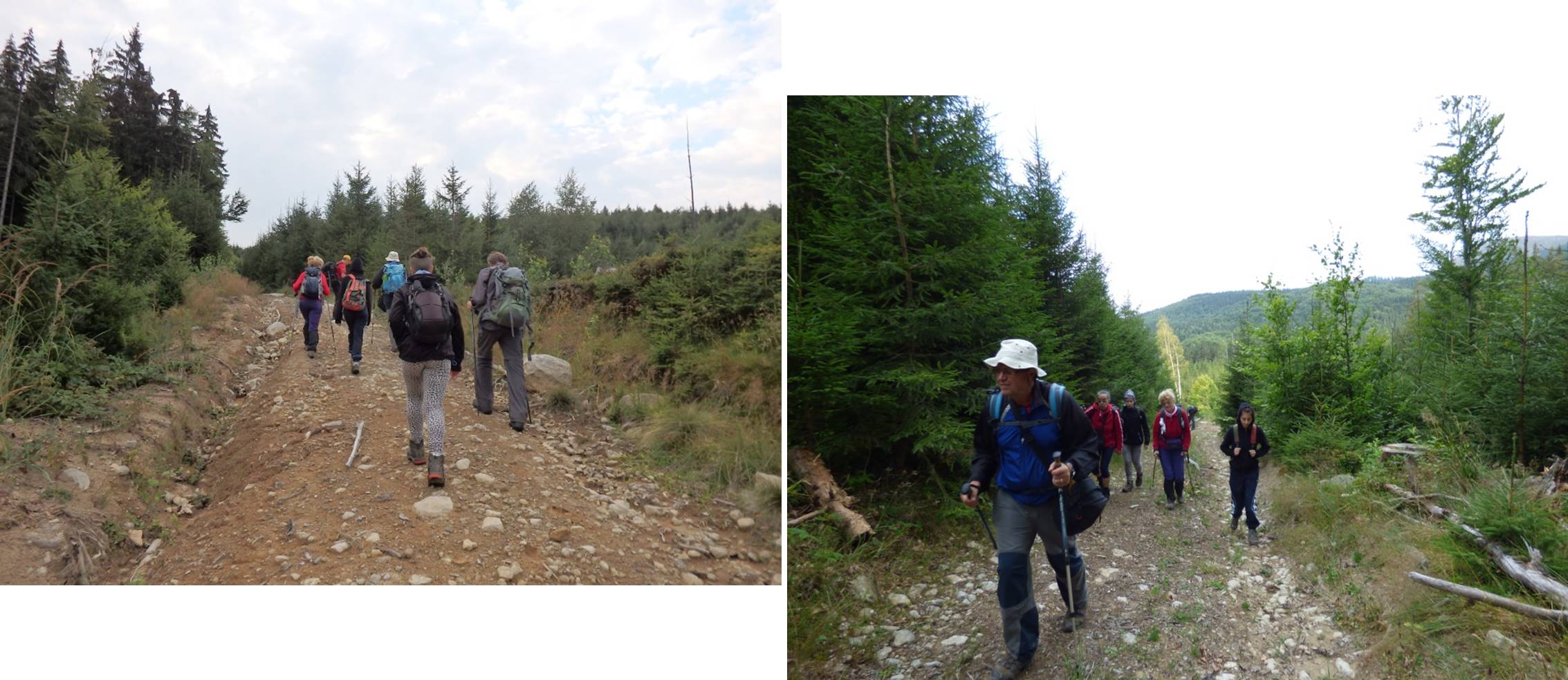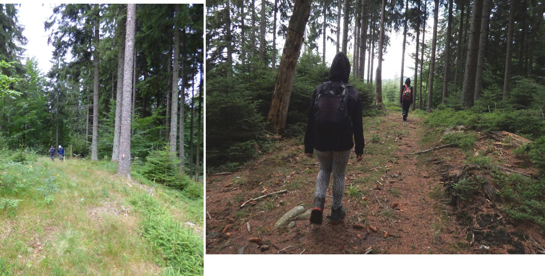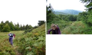 Astfel, imediat după ce ieșim într-o poiană largă, traversând-o, dăm de un drum de tractor …