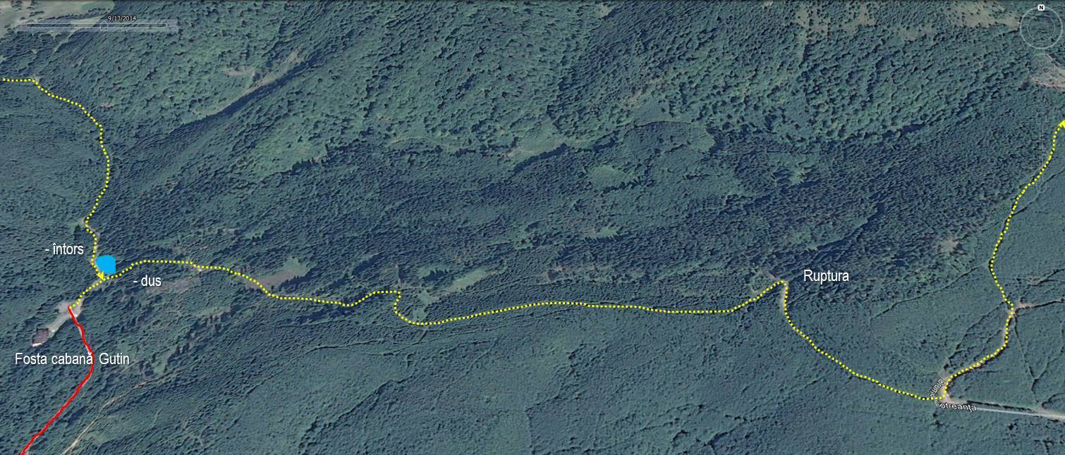 … ce debușează rapid în drumul forestier de pe valea Gutâiului, …
