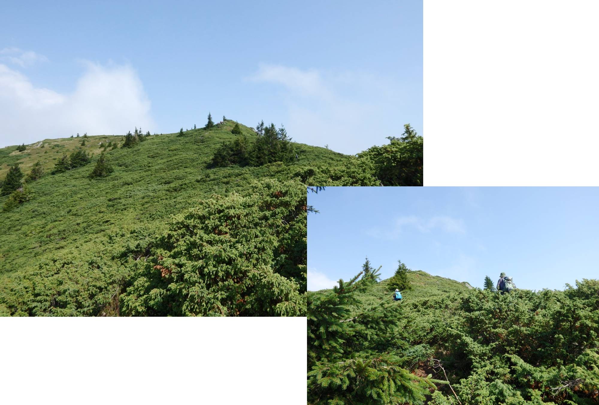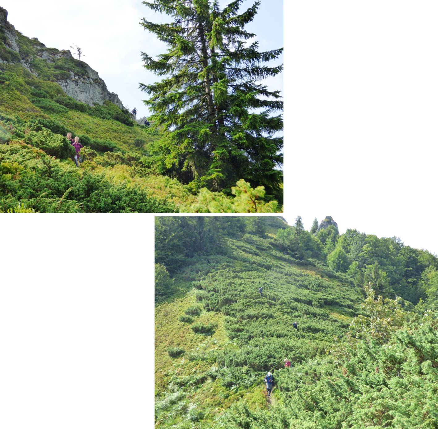 … poteca traversează ienuperișul urcând pe versantul estic al crestei …
