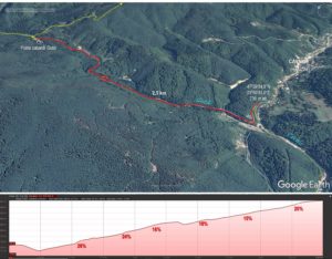 … la prima intersecție majoră – de fapt cunfluența cu drumul minier Cotreanța, după numele minei deservite – alegem ramura ce suie spre stânga, …