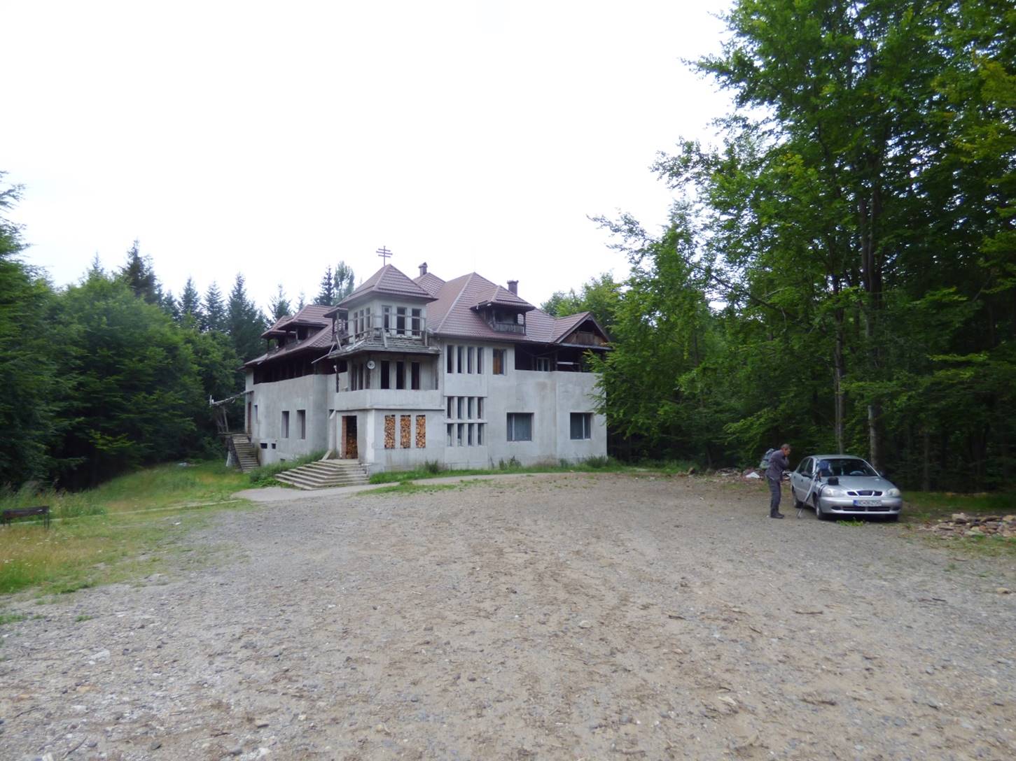 Mașinile rămân lângă fosta cabană turistică a Exploatării Miniere Cavnic.