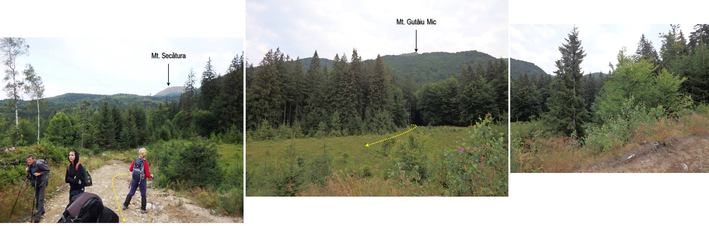 … ajungem, urmând un marcaj triunghi roșu, cvasiinexistent, la poalele estice ale Secii, …