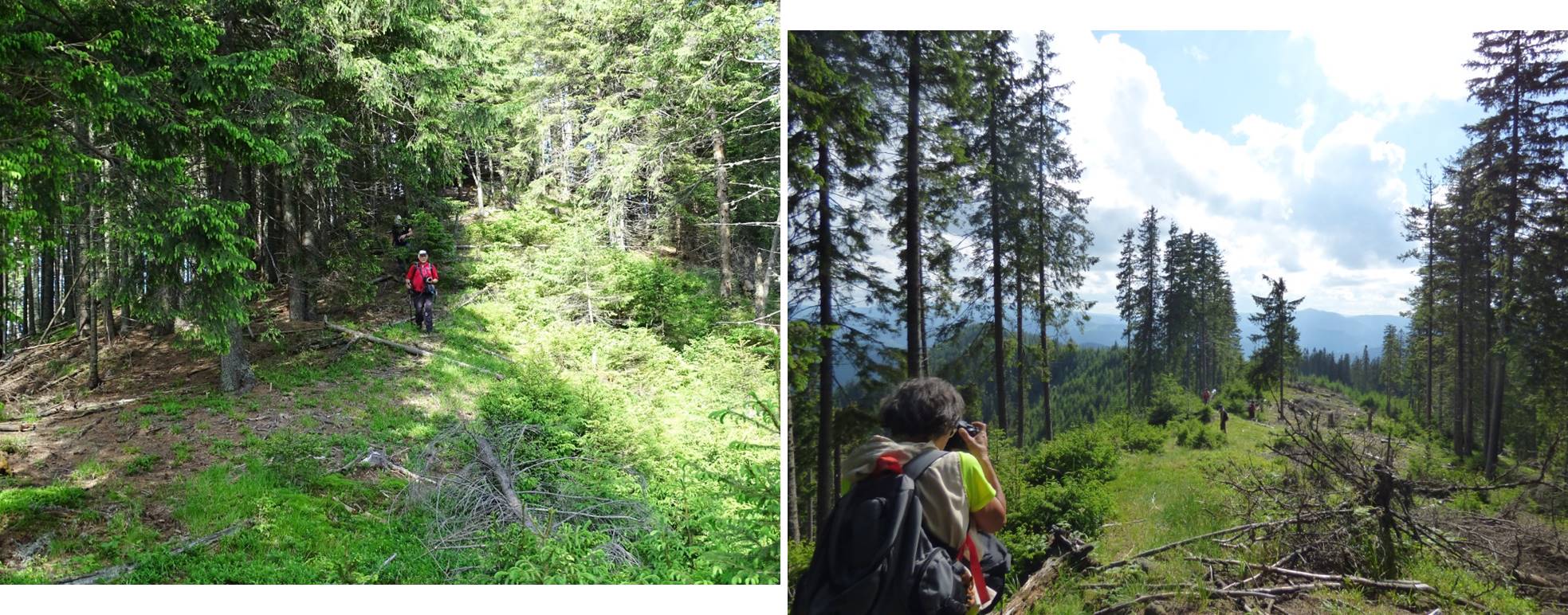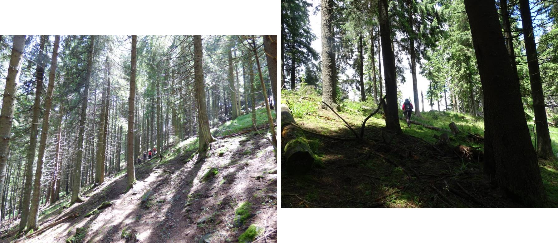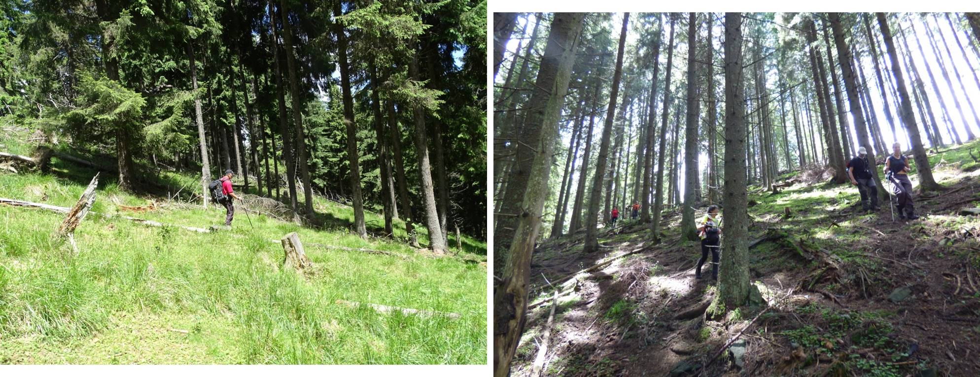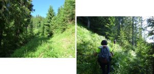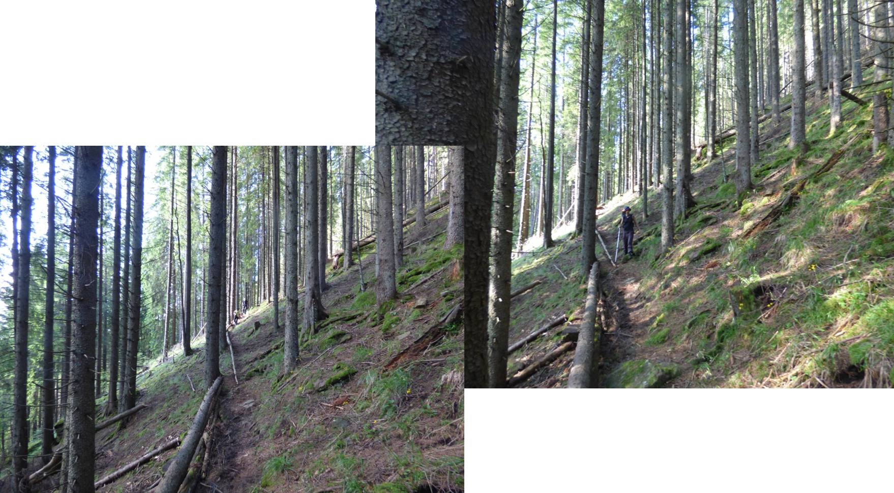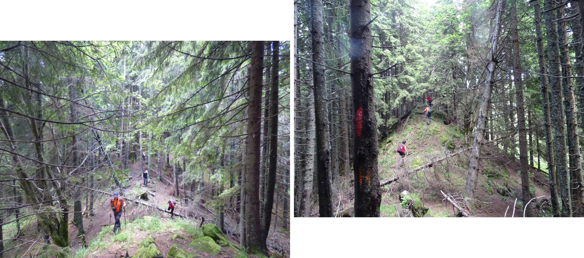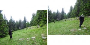 Vom descoperi o breșă în molidișul din stânga noastră, de fapt o potecă de vite, pe a cărei curbă de nivel vom defila, …