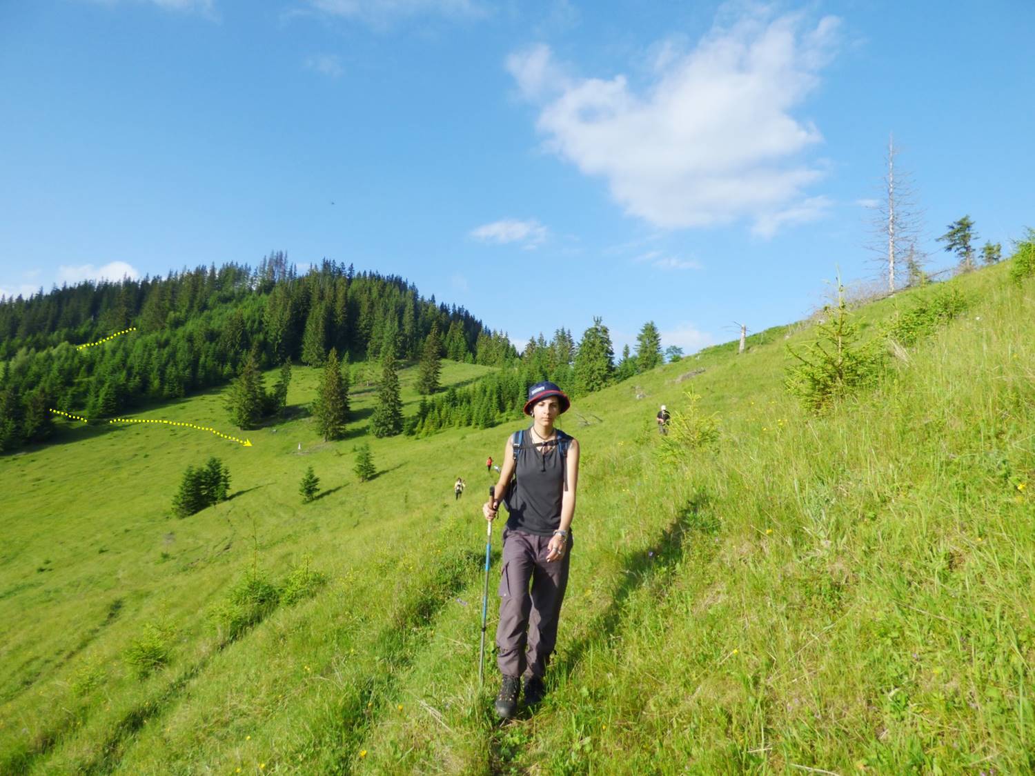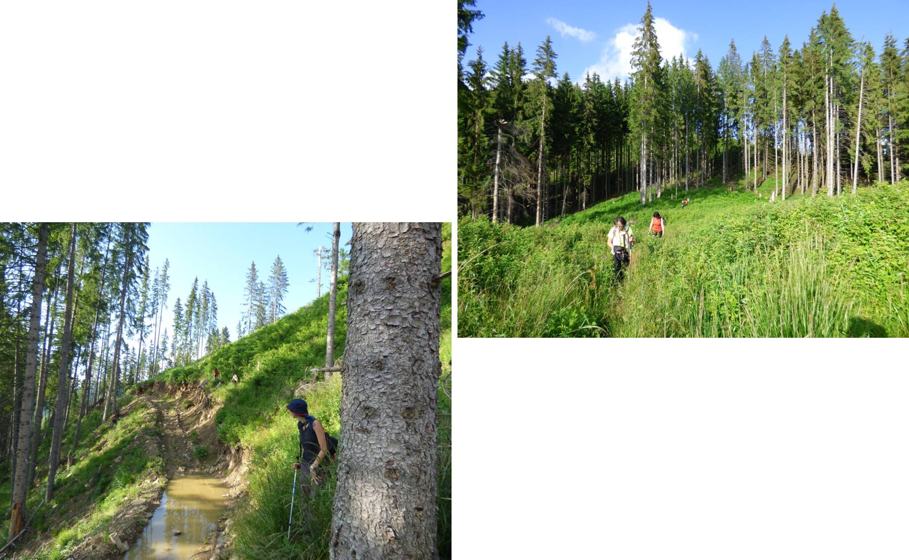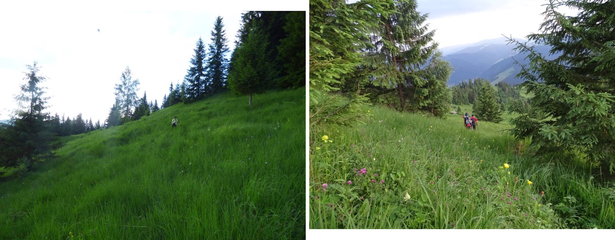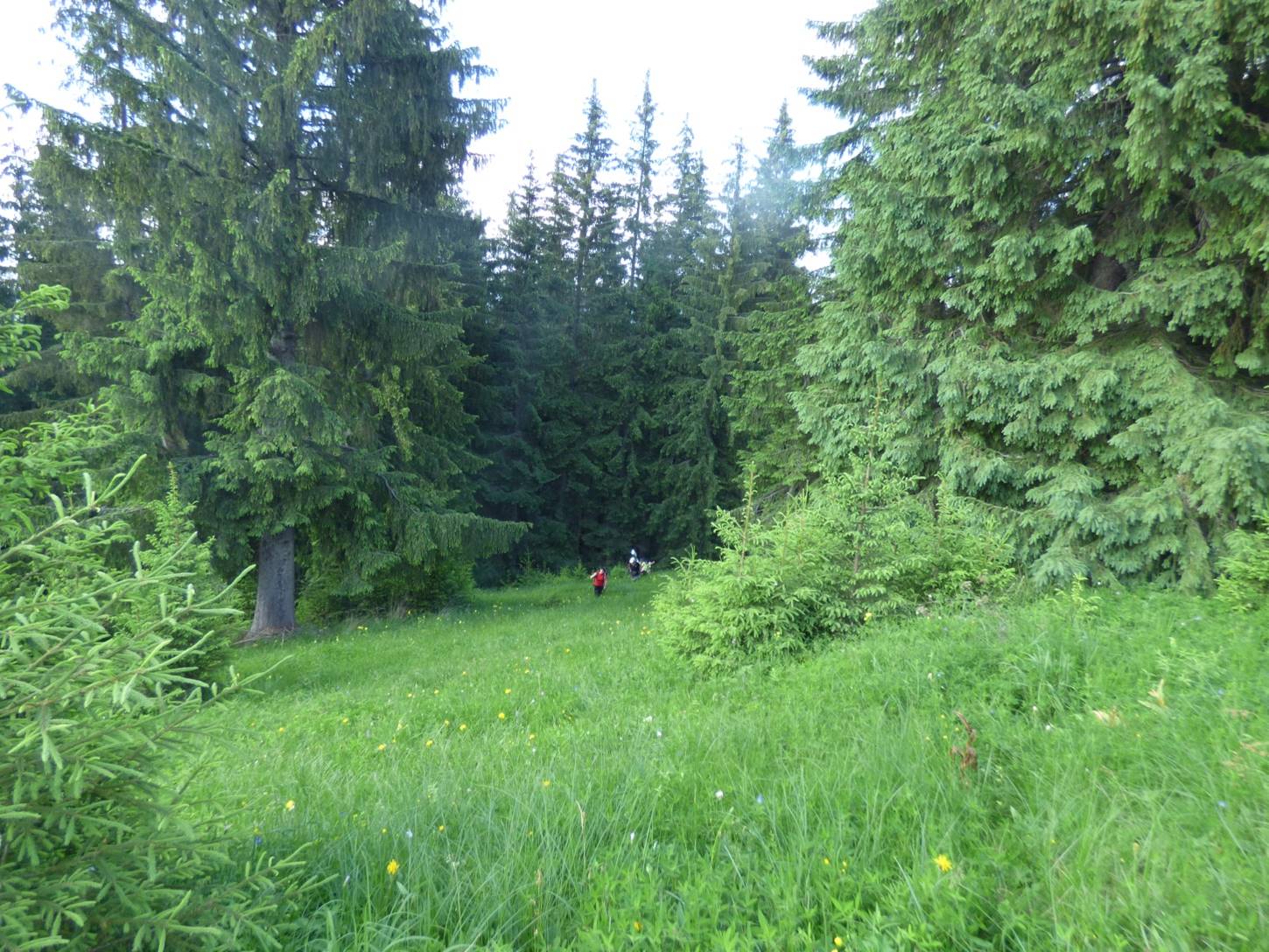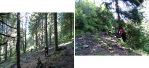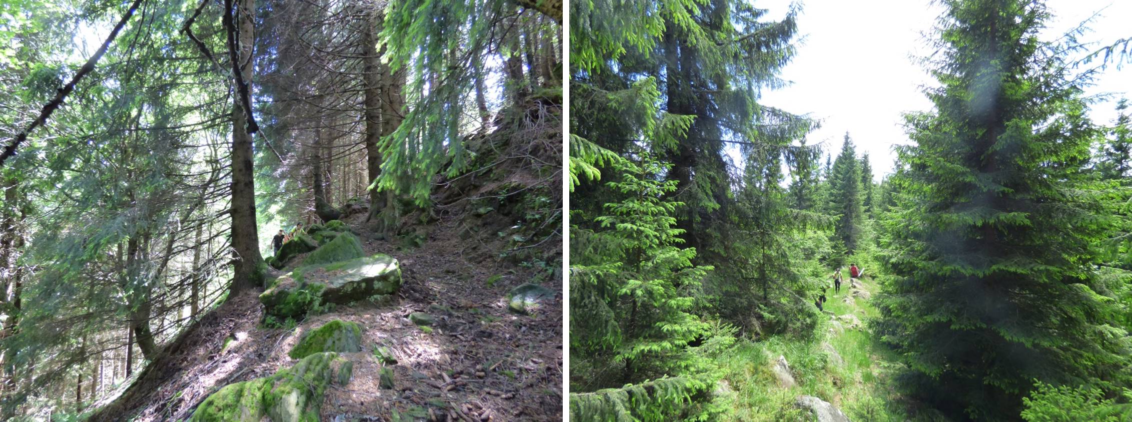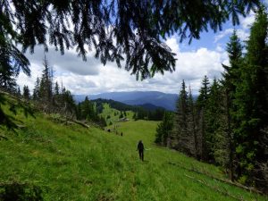 Vom descoperi o breșă în molidișul din stânga noastră, de fapt o potecă de vite, pe a cărei curbă de nivel vom defila, …