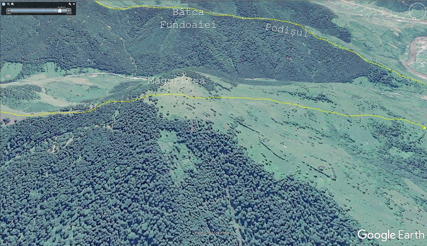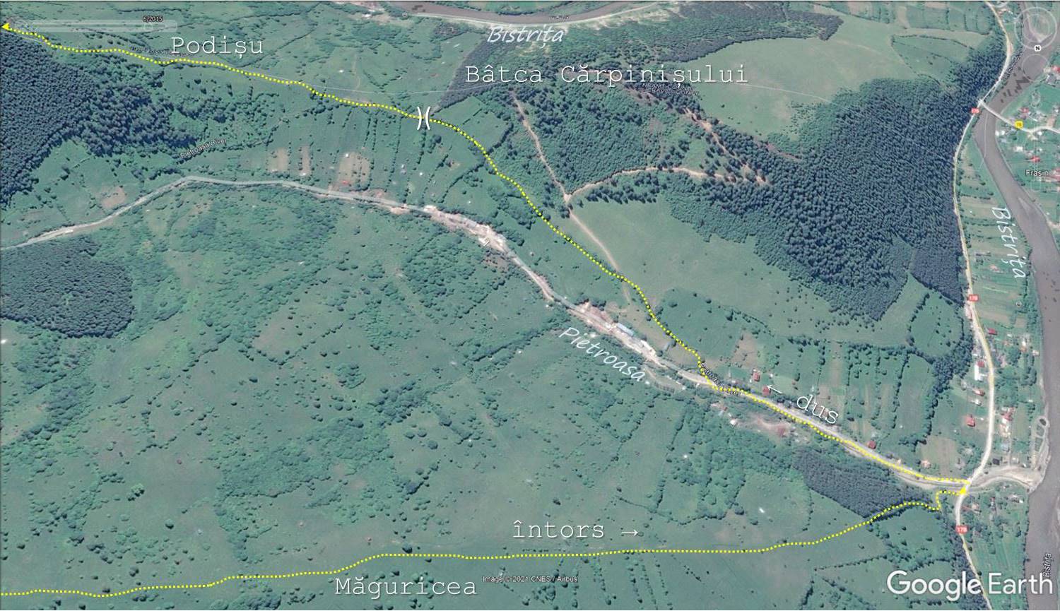 … și vizând muchia piciorului pe care îl întinde Măguricea până la gura Pietroasei !