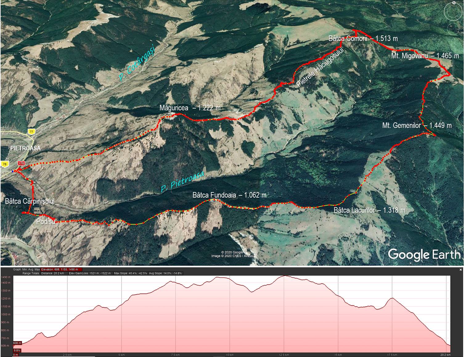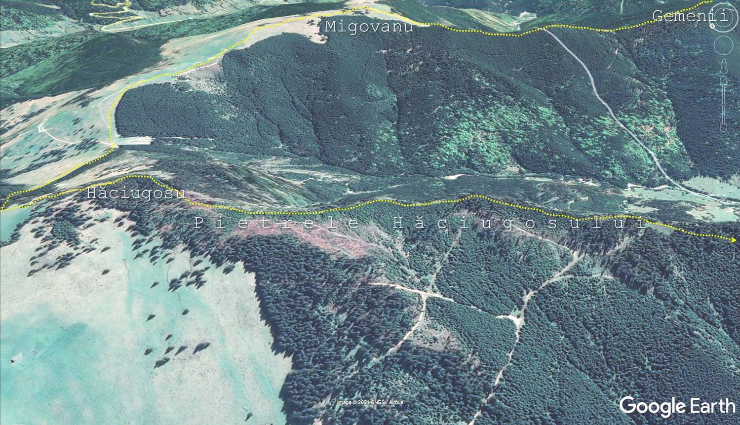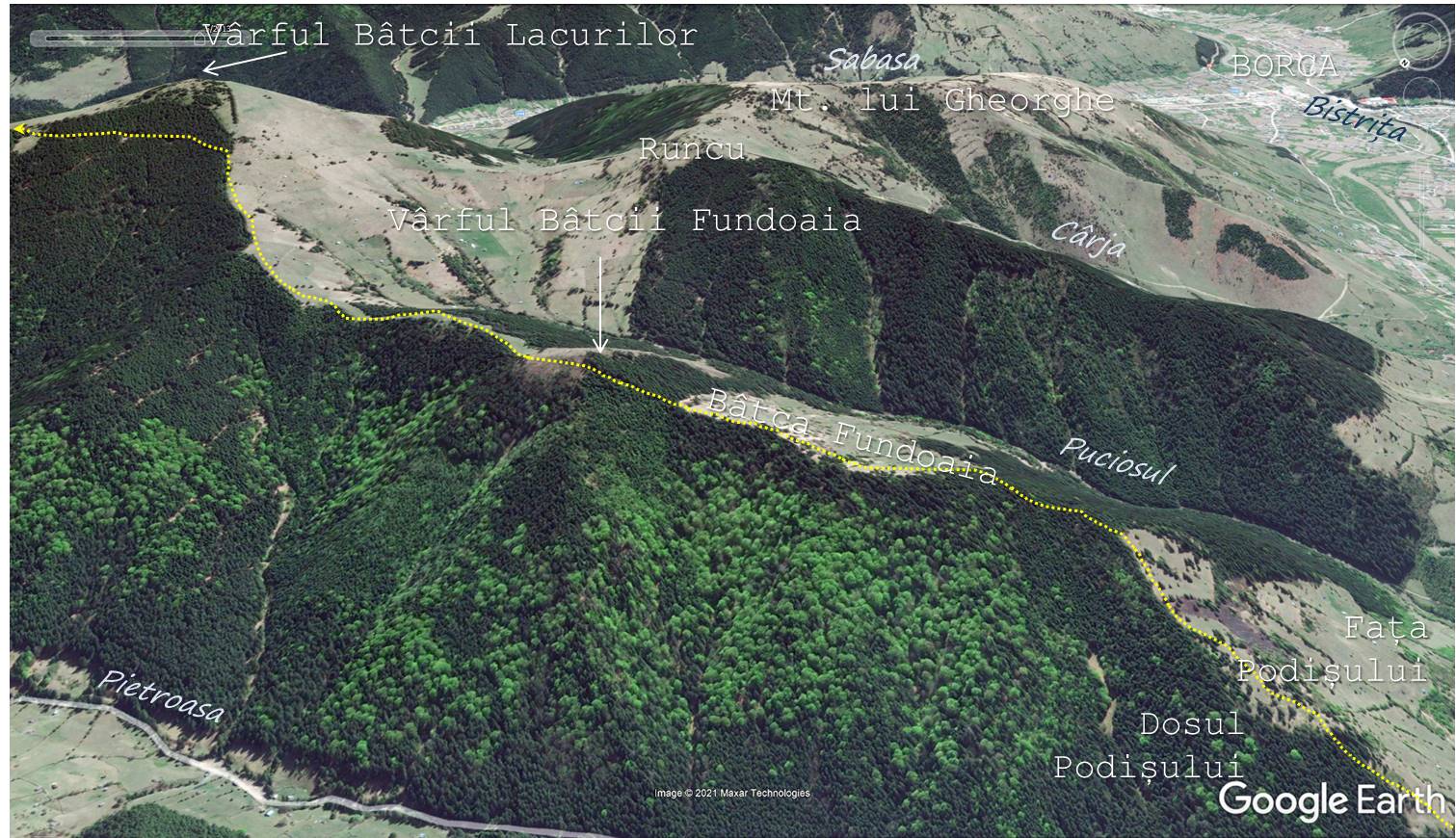 [Schema “satelitară” a traseului de pe Muntele Hăciugosu …