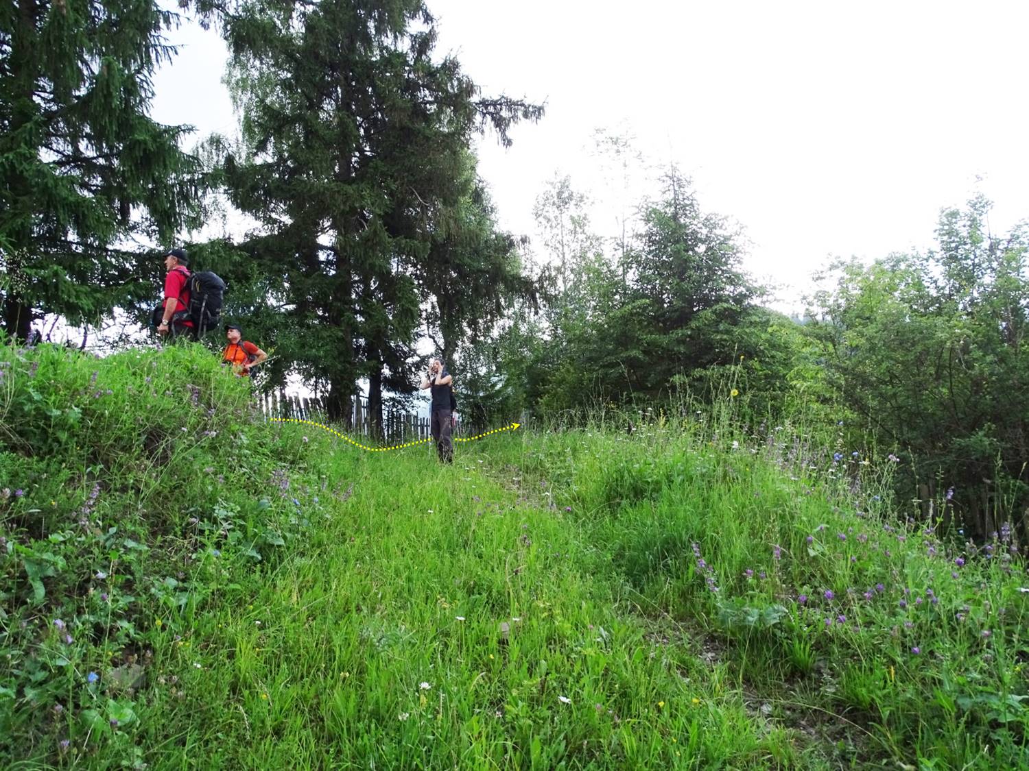 … nu fără rost, căci va trebui să fim atenți să nu fim furați de o ramură mai nouă a drumului – forestieră – ce suie spre Bâtca Cărpenișului, noi rămânând fideli celui … străvechi, alipit gardului din stânga !