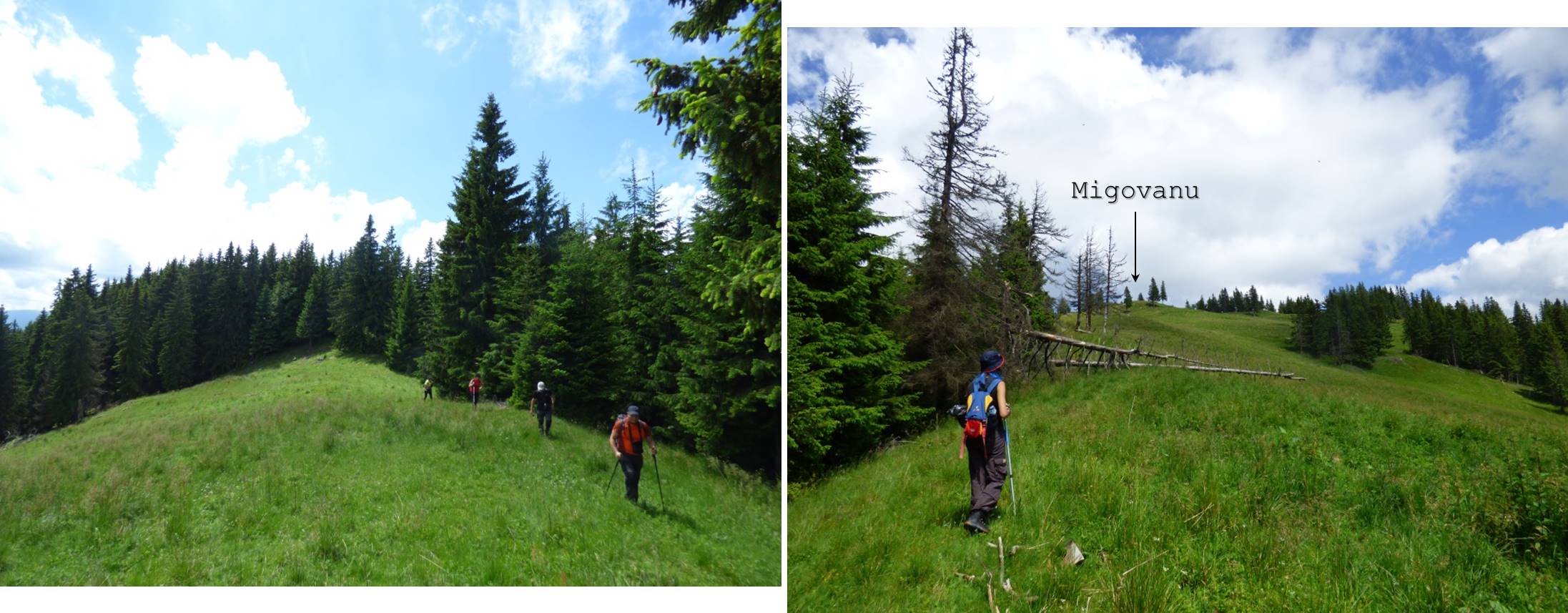 Din șaua joasă dintre Migovanu și Hăciugosu ne preia, în urcuș ceva mai atenuat, un drum de tractor; …