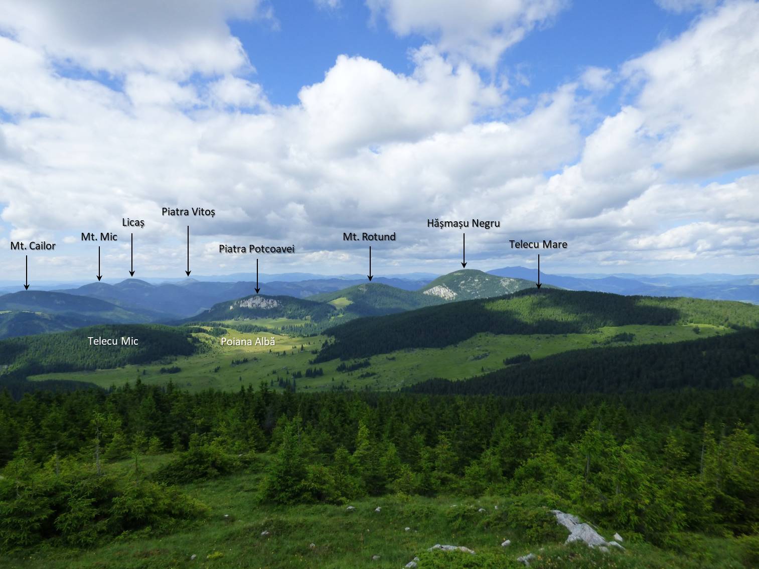 Telek (Mic și Mare) (munți): cuvântul maghiar ‘telek’ are sensul de ‘pământ, sol’; combinat cu ‘telik’ = ‘plin, saturat’, în Etimológiai szótár. Magyar szavak és toldalékok eredete/Dicționar etimologic ‘telek’ primește sensul de ‘pământ fertilizat’.