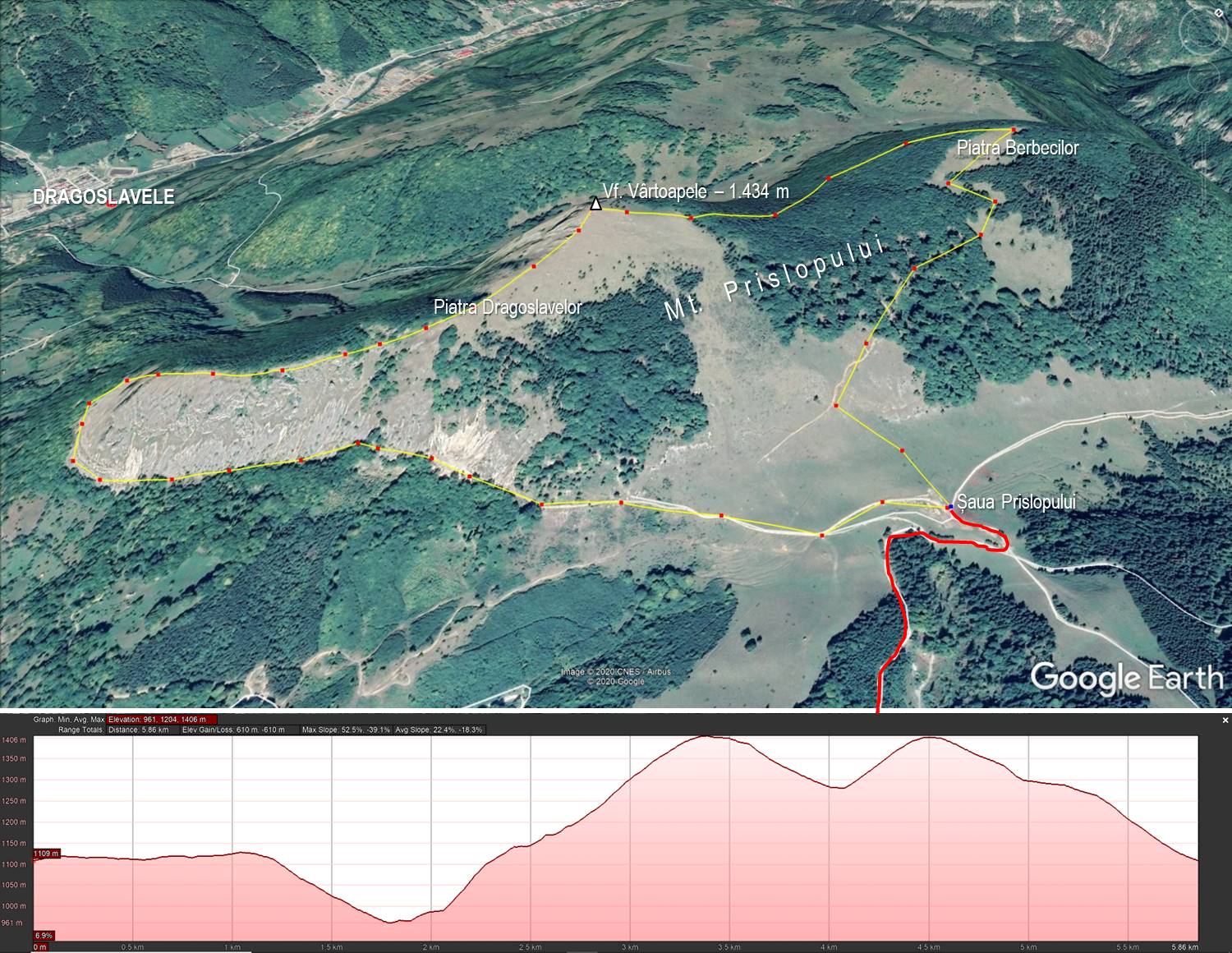 Traseu: Șaua Prislopului – Piatra Dragoslavelor – Vf. Vârtoapele – Piatra Berbecilor – Șaua Prislopului