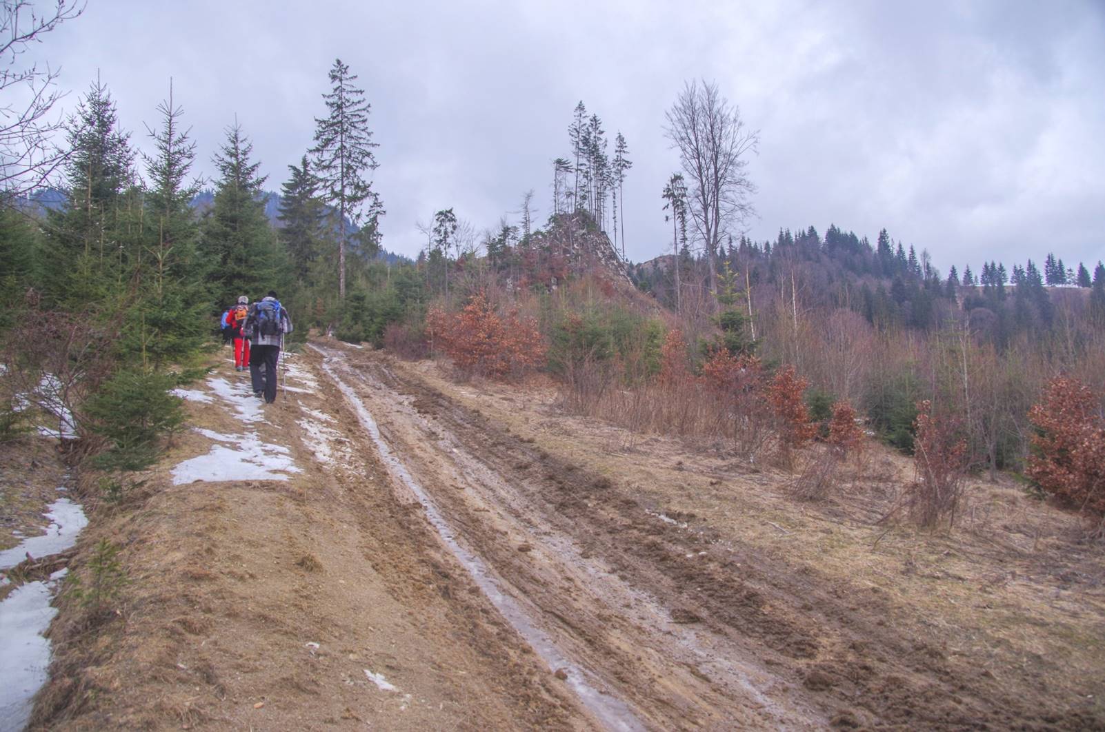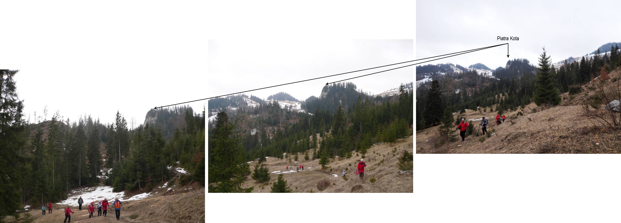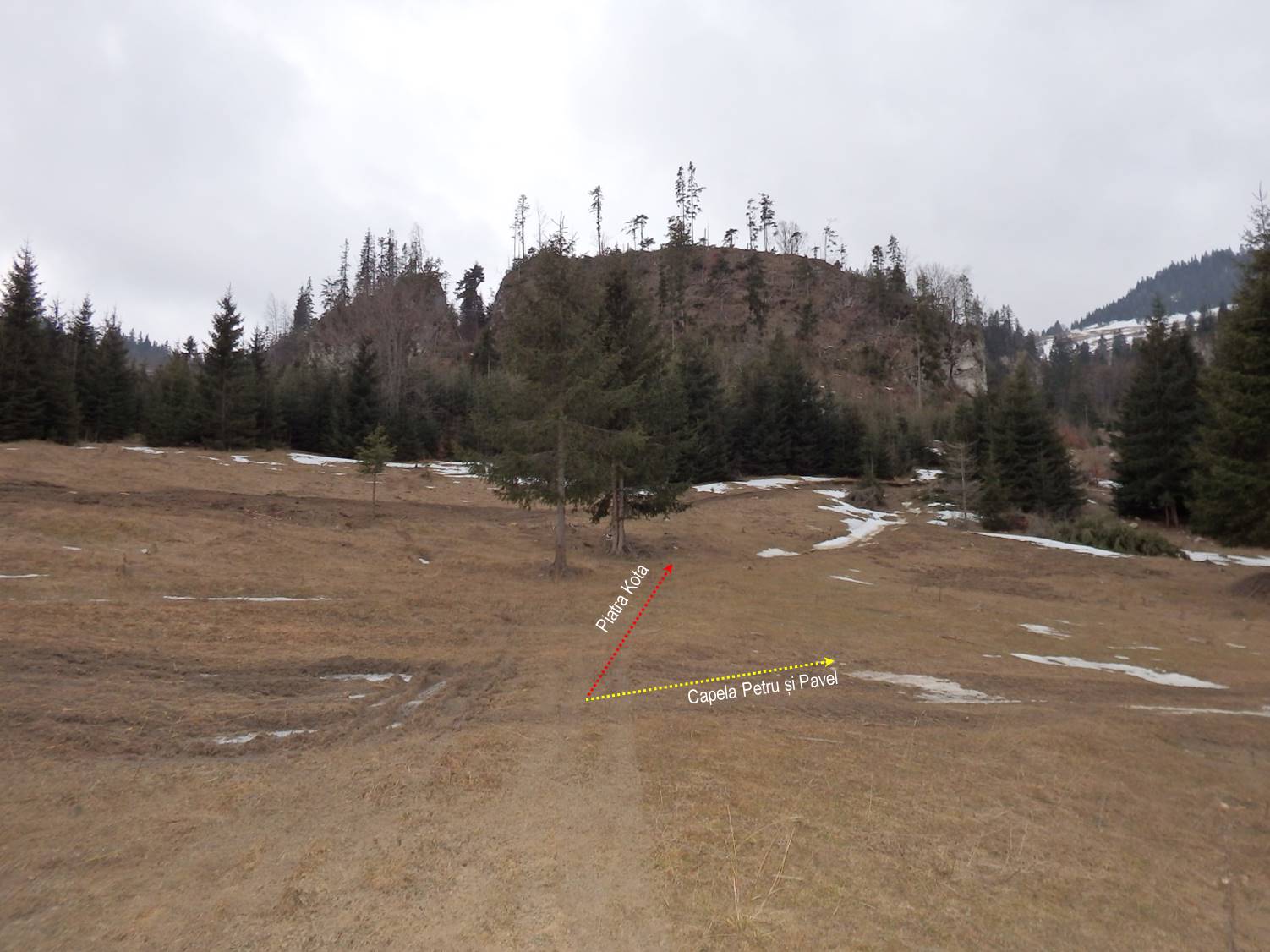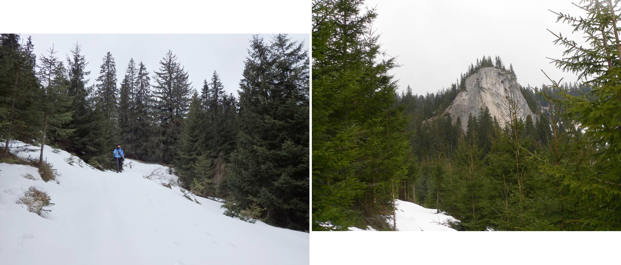 Drumul, după ce traversează valea Colțului Mare, ne lasă într-o poieniță, …