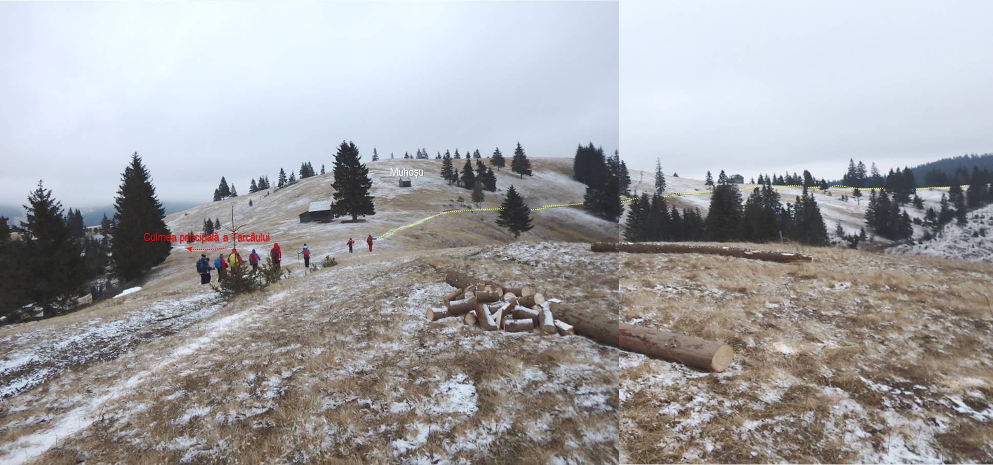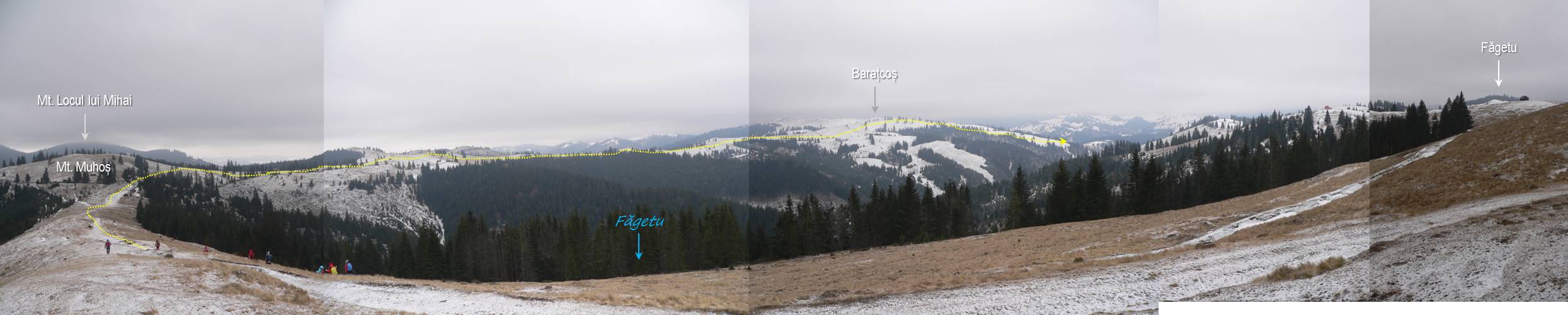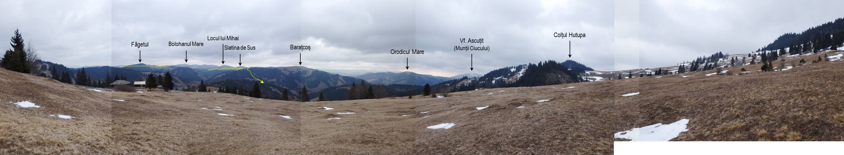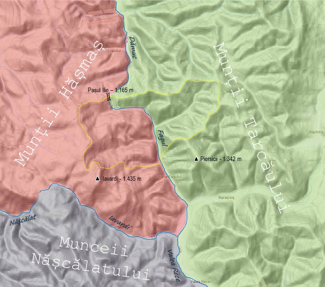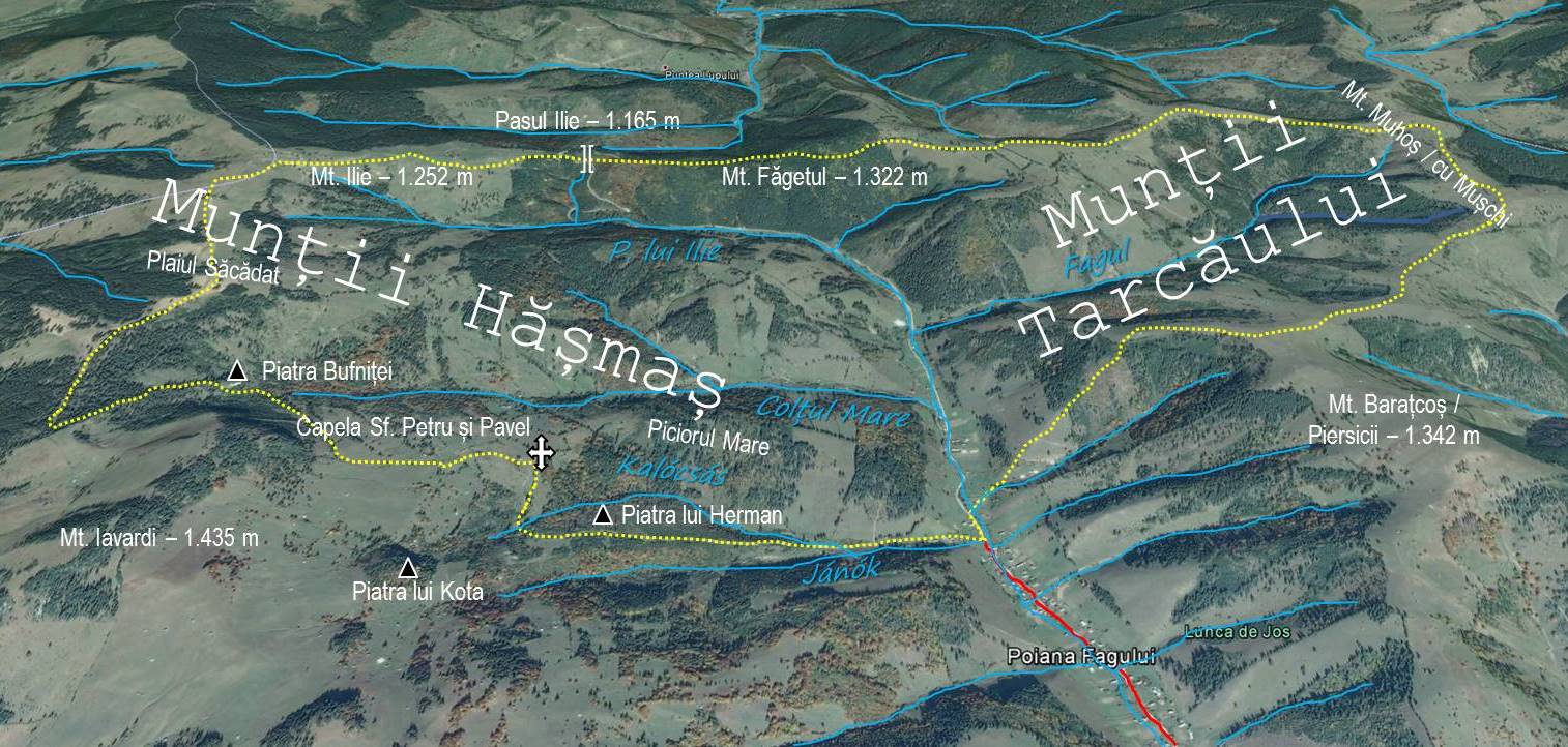 … plaiul ce leagă culmea principală a Hășmașului de Munții Tarcăului, la a cărei întâlnire cotim drastic spre dreapta !