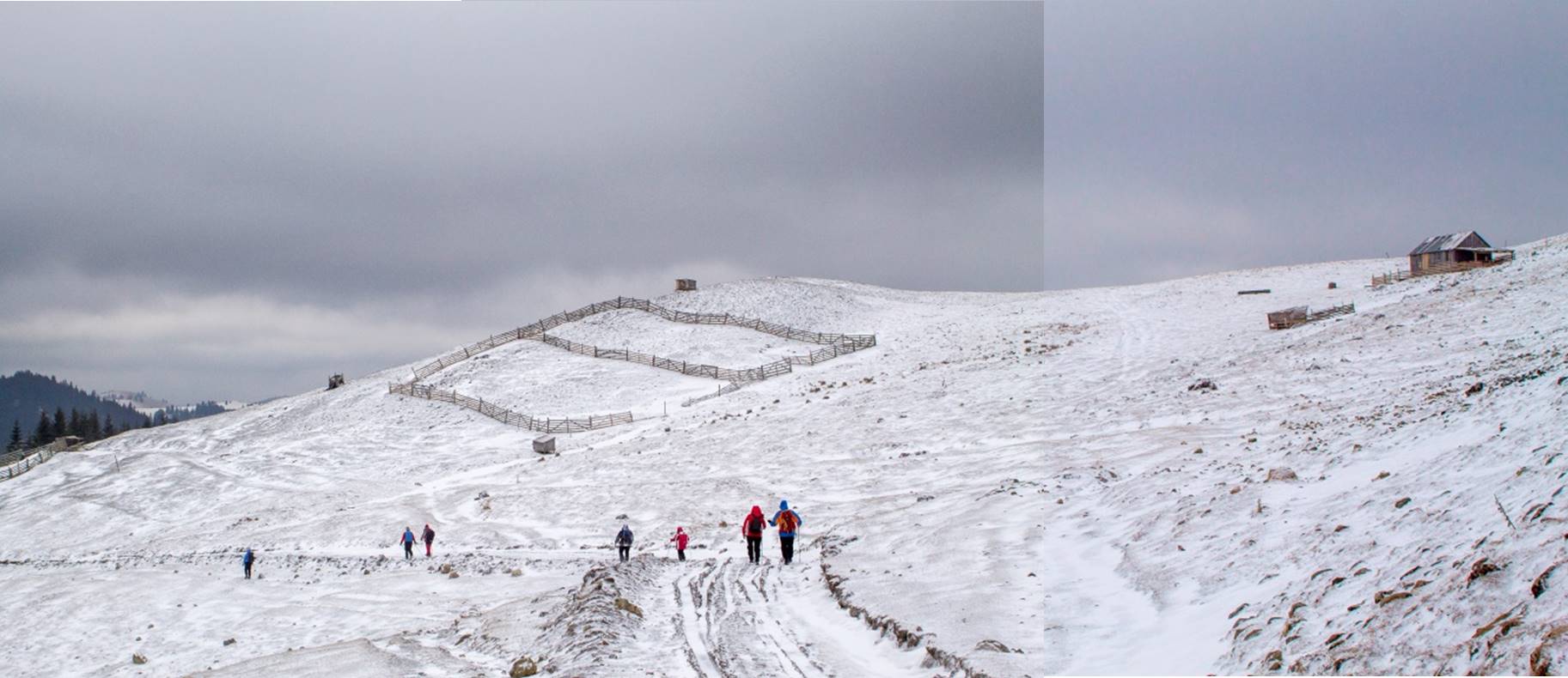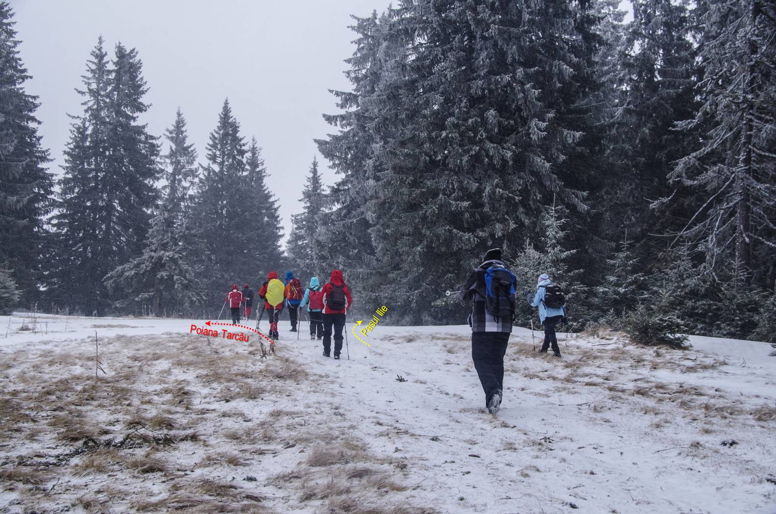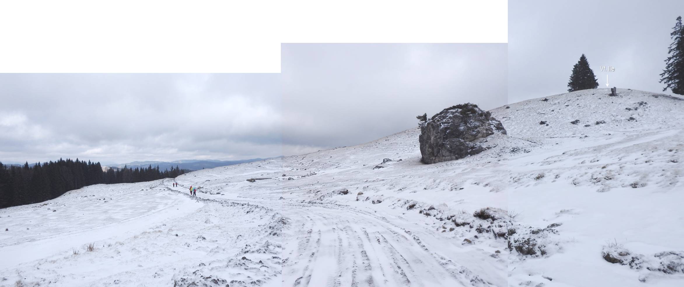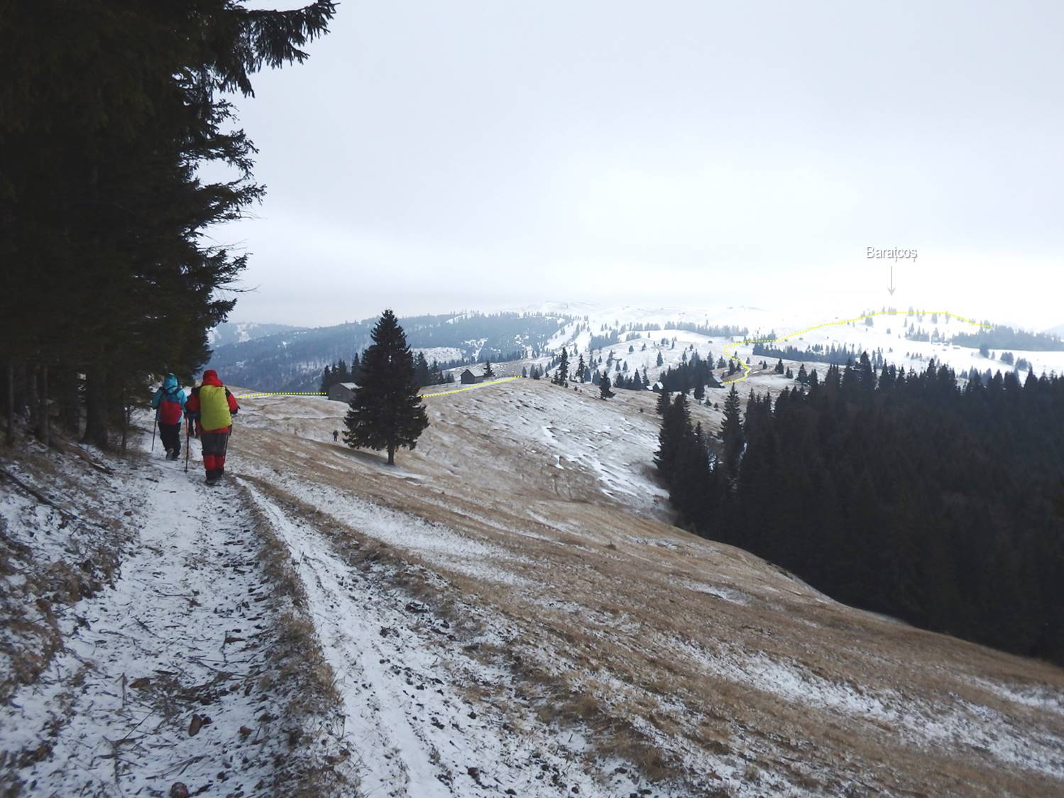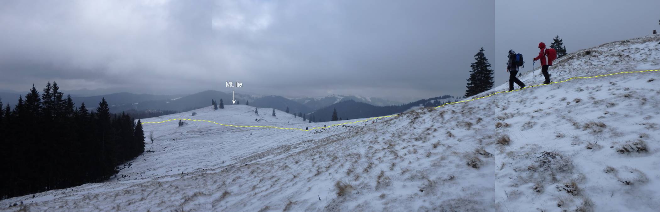 … plaiul ce leagă culmea principală a Hășmașului de Munții Tarcăului, la a cărei întâlnire cotim drastic spre dreapta !