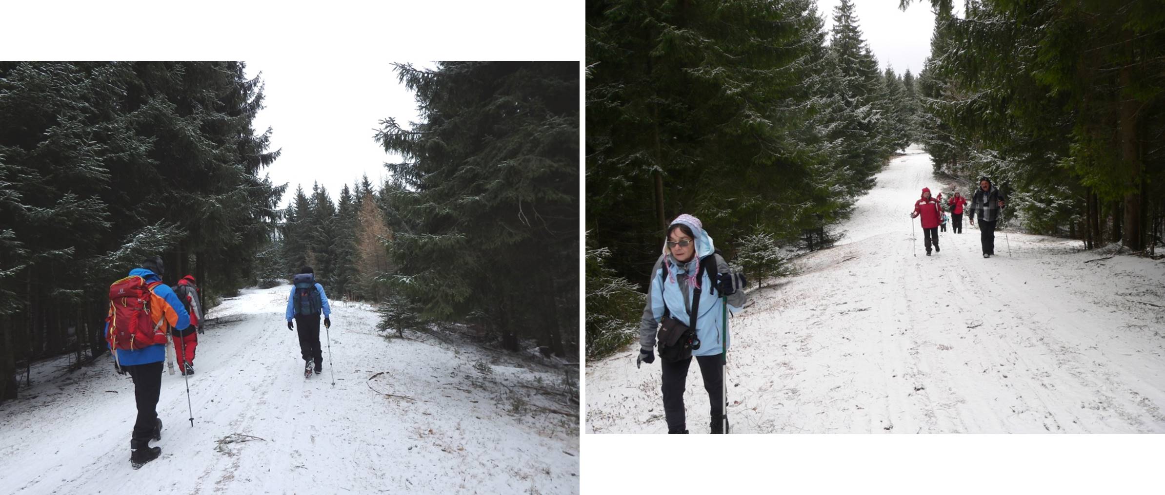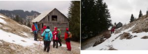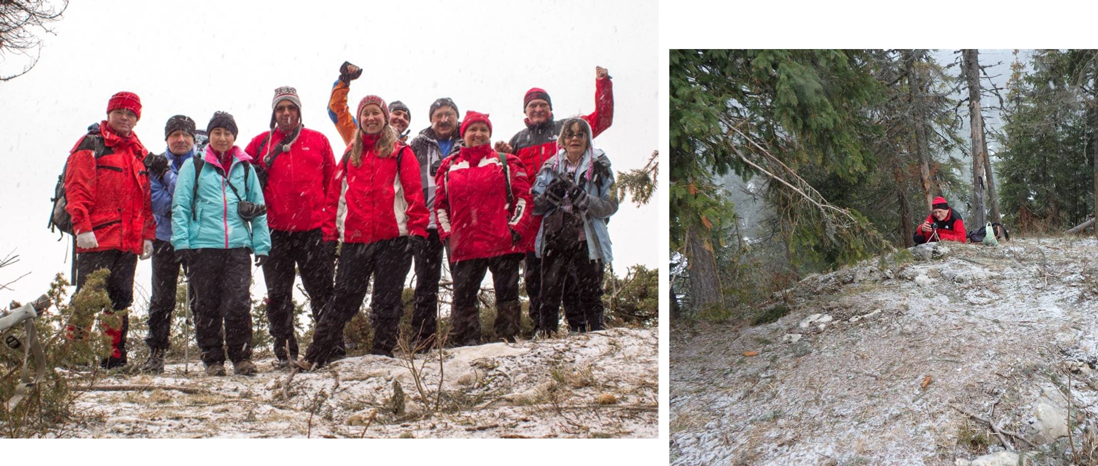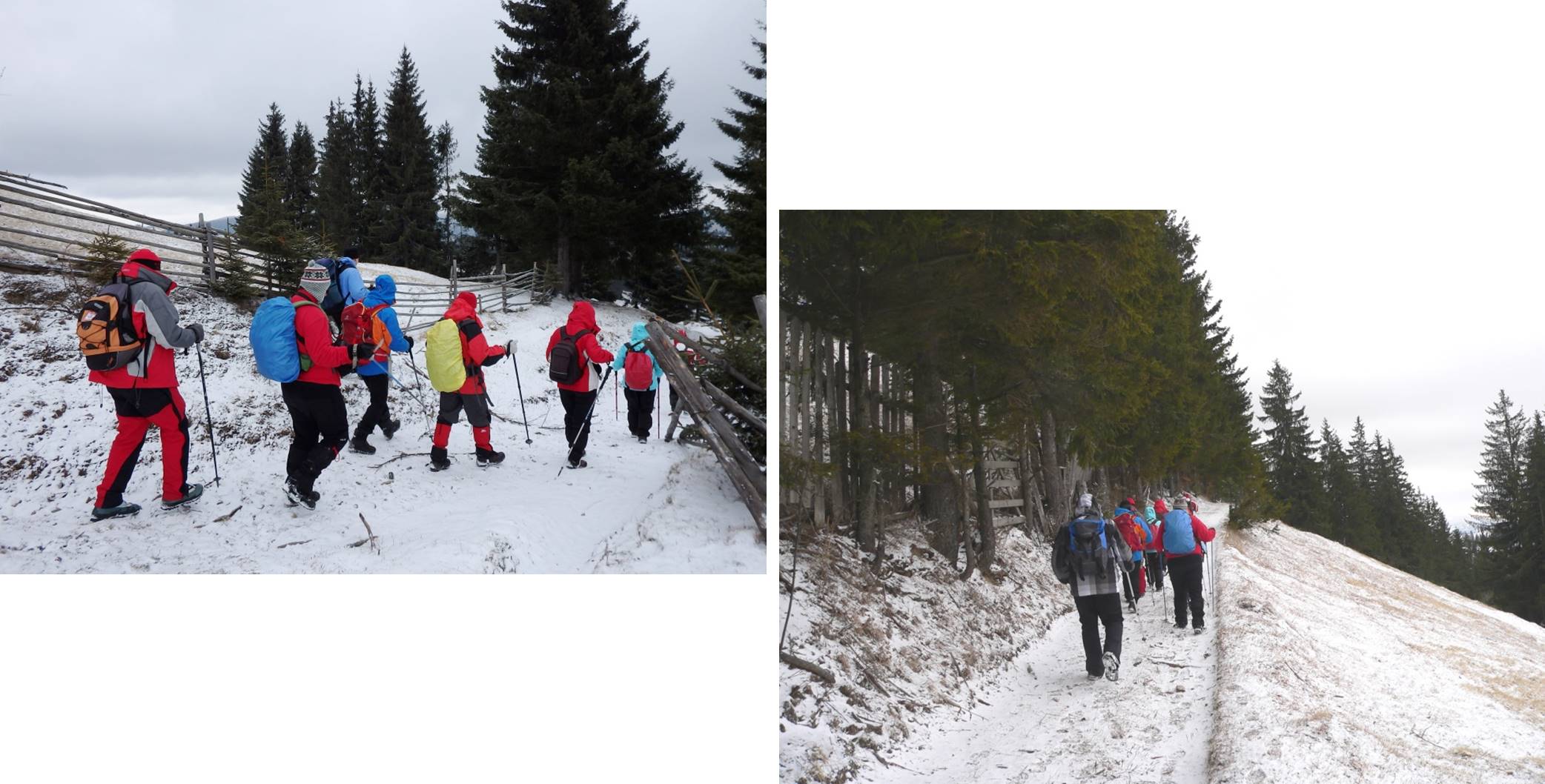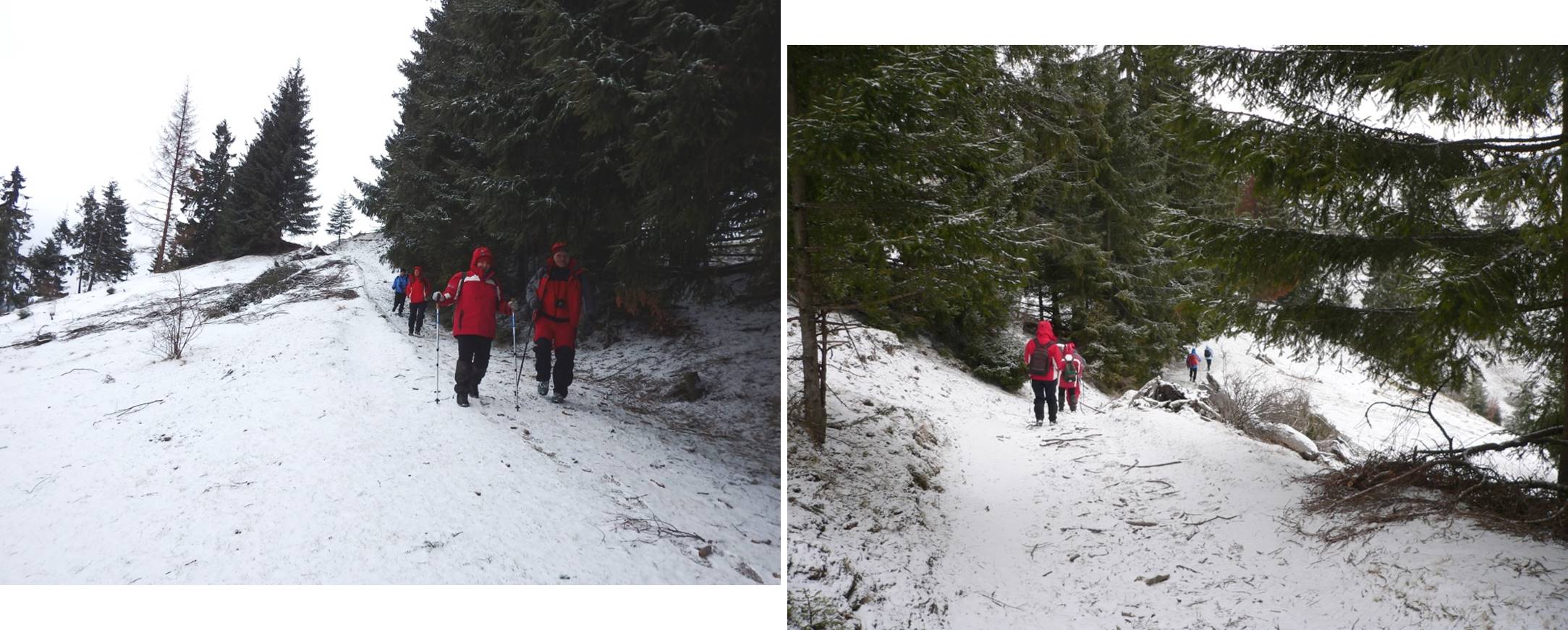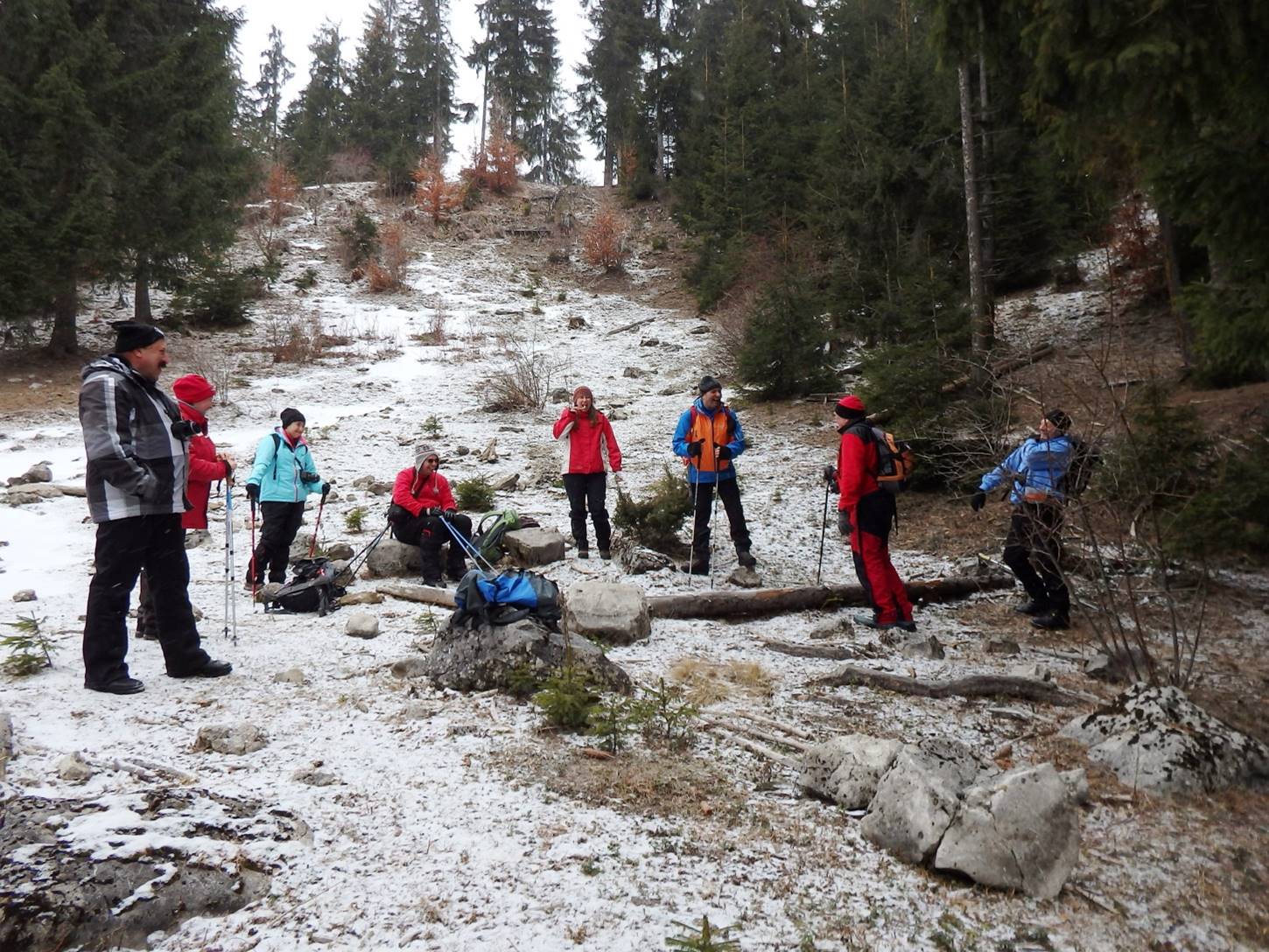 Dincolo de vârful spre care suim, cotim ușor spre dreapta (brațul de pe piciorul din stânga sfârșește în valea Bicăjelului) !