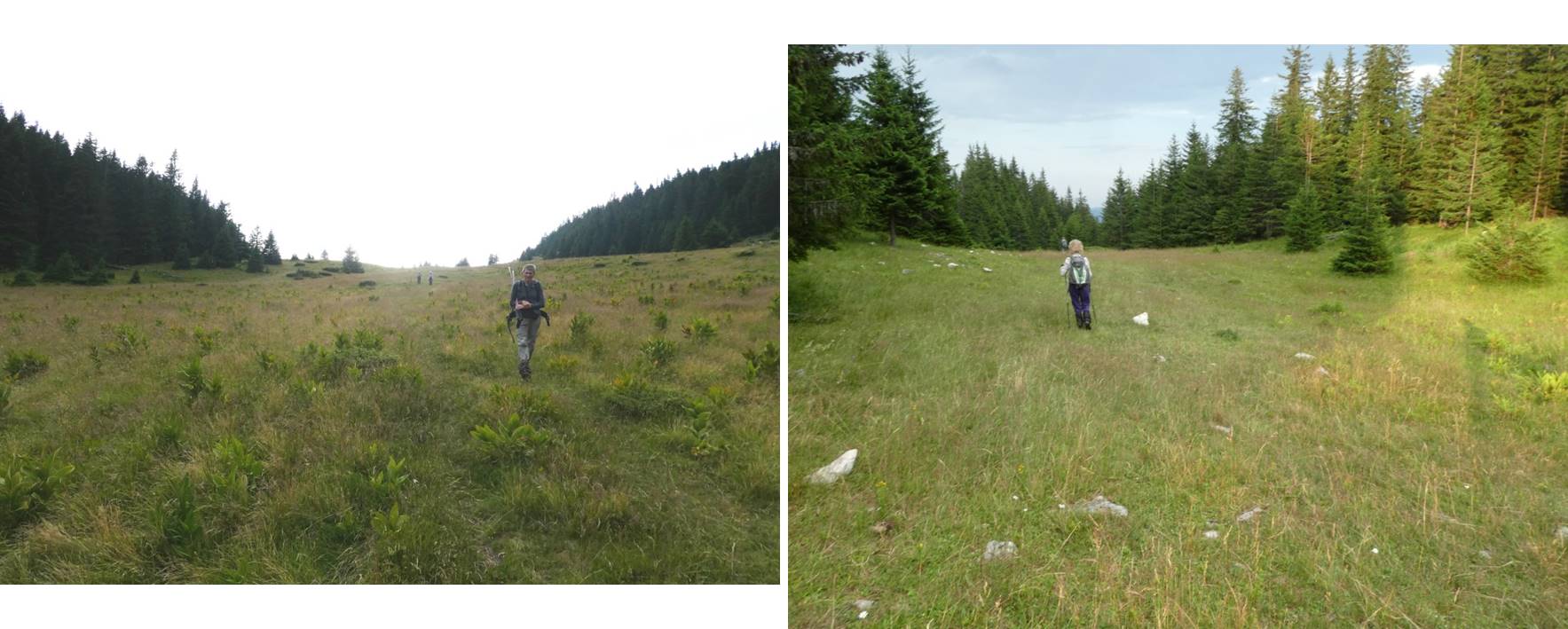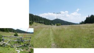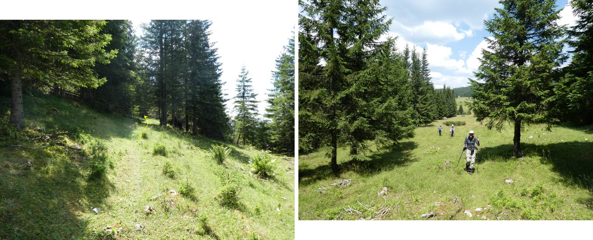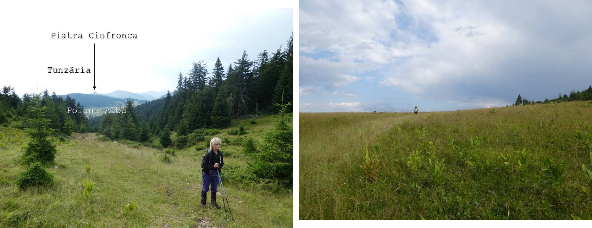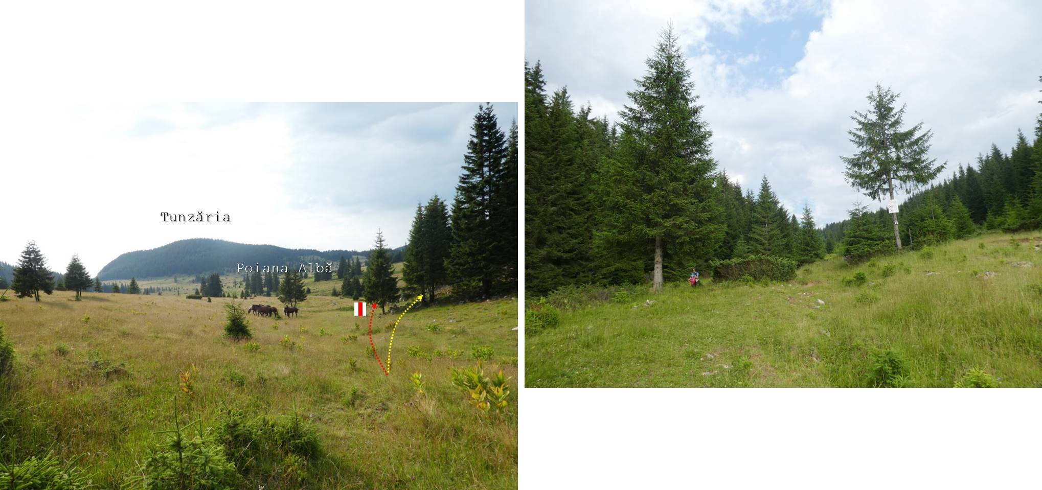 … se termină, la marginea sudică a Poienii Albe, unde opărăsim marcajul turistic și săltăm puțin o mică treaptă altitudinală spre dreapta, …