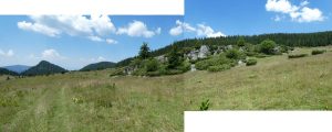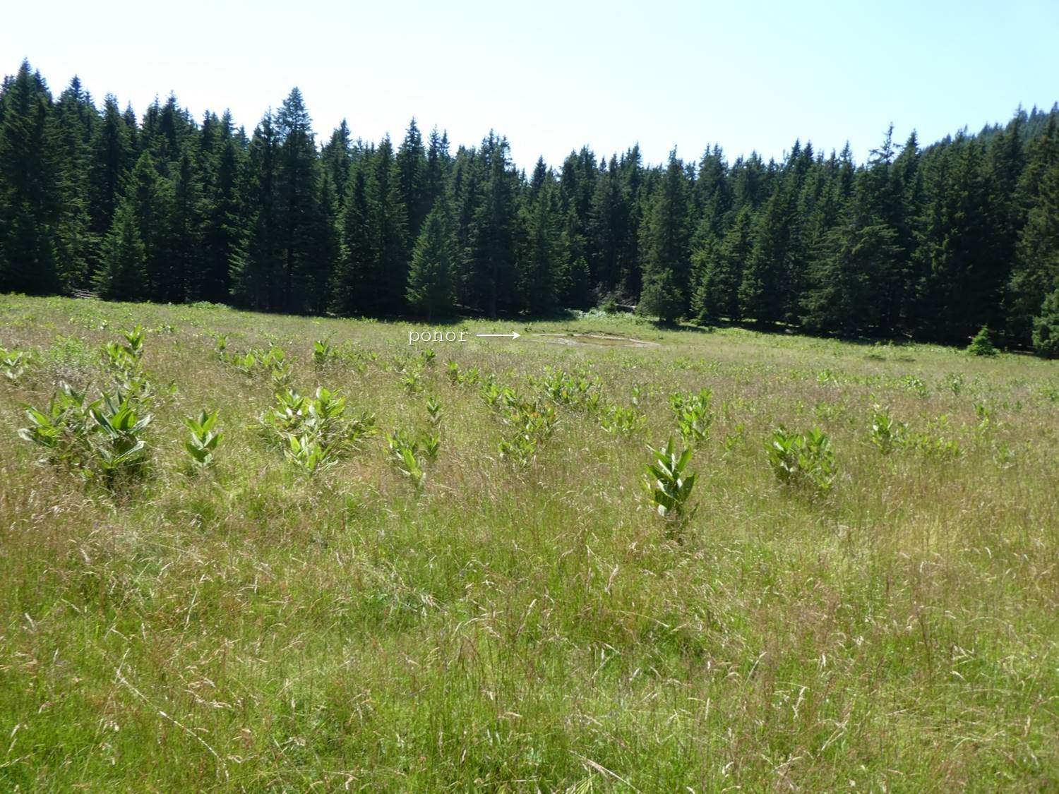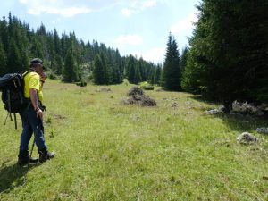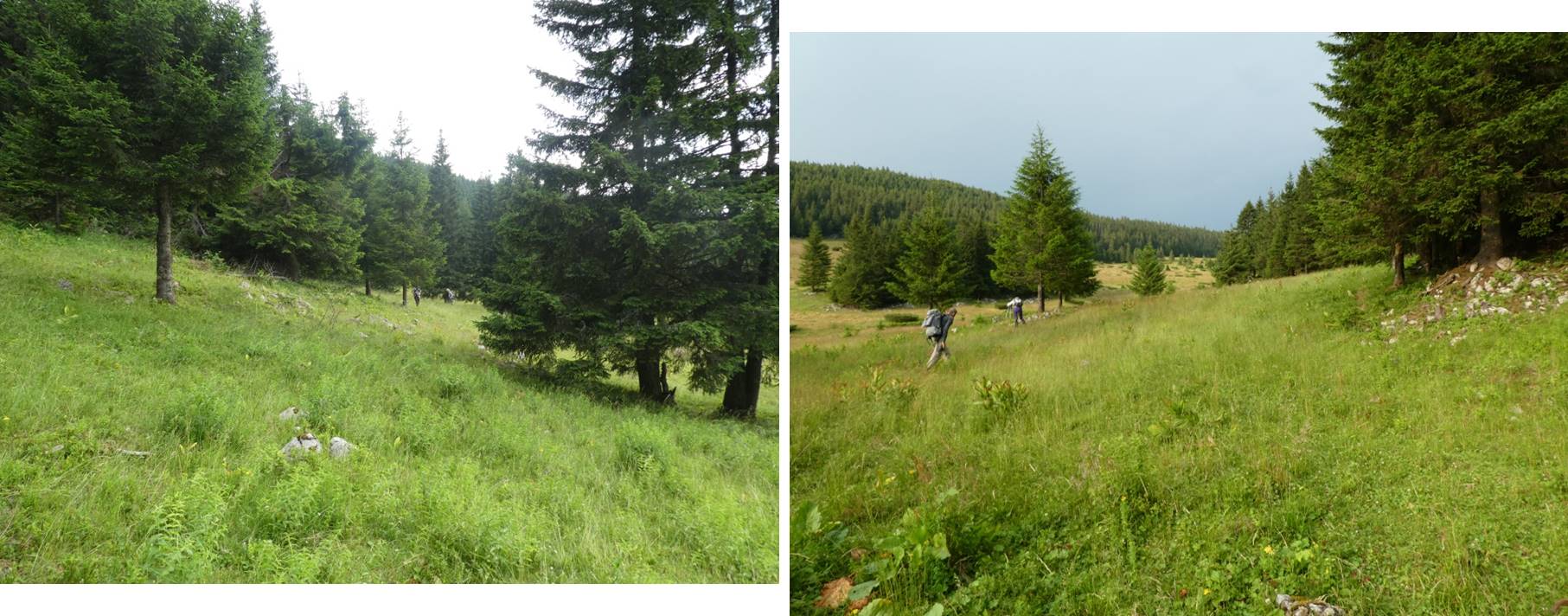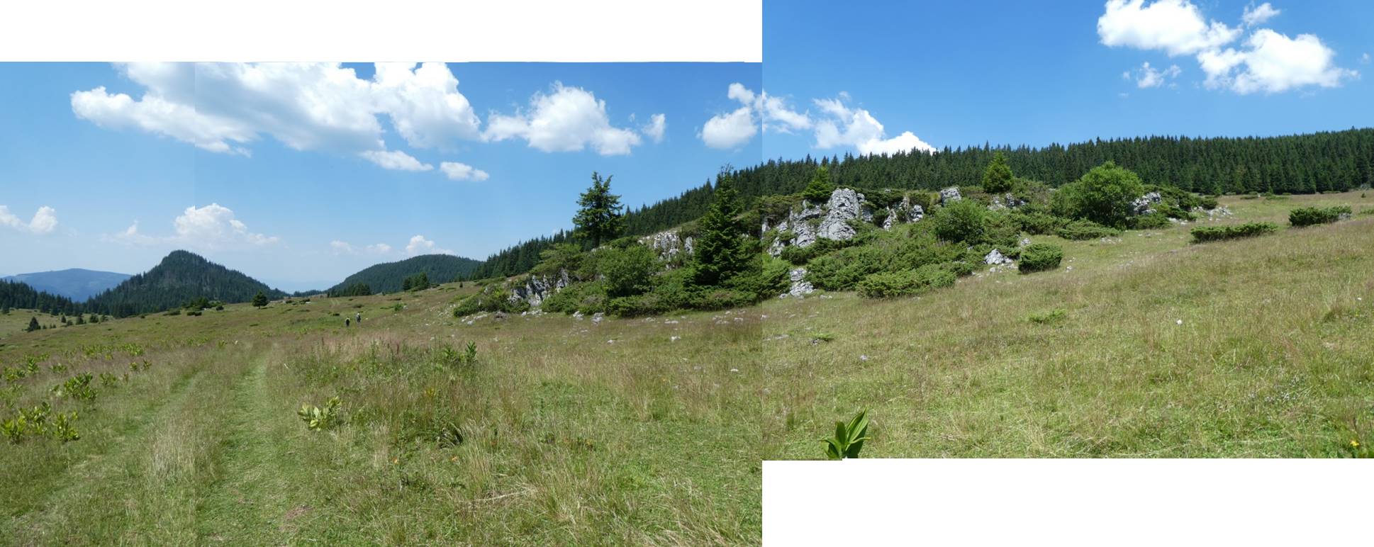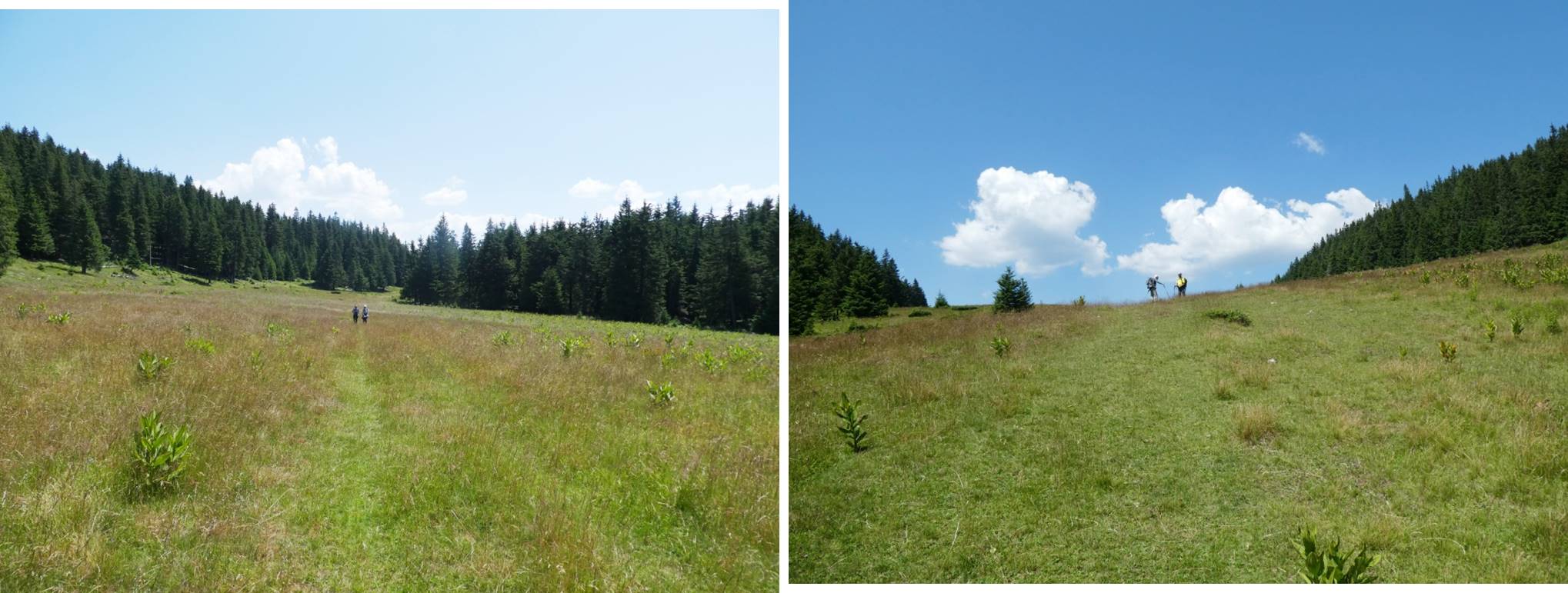 … se termină, la marginea sudică a Poienii Albe, unde opărăsim marcajul turistic și săltăm puțin o mică treaptă altitudinală spre dreapta, …