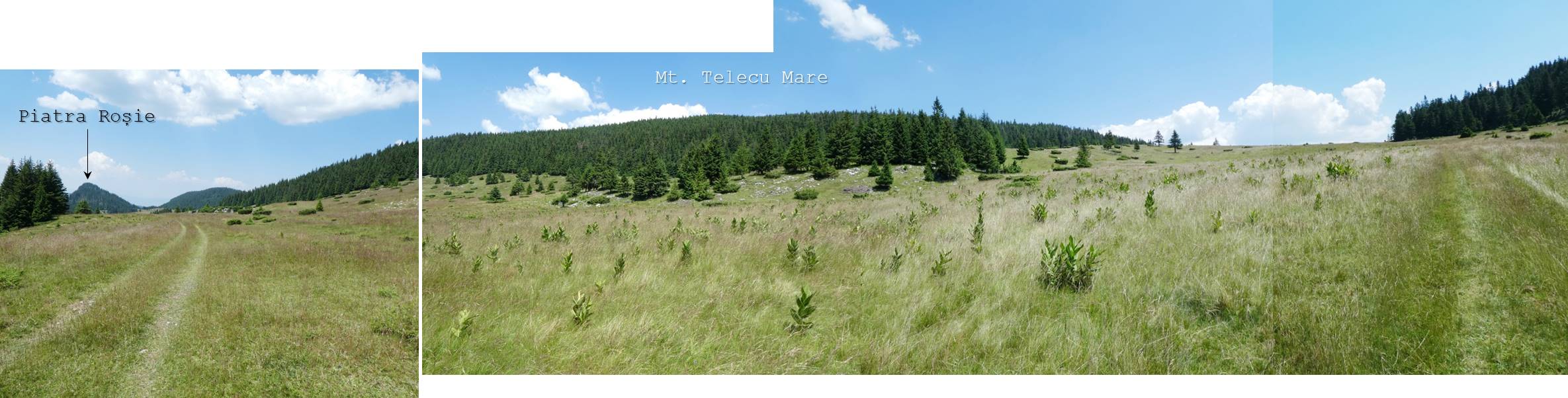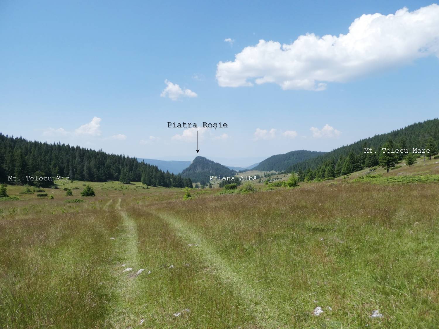 Coborâm prin Poiana Telecului Mare avînd ca reper Piatra Roșie …