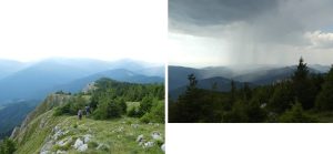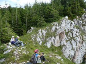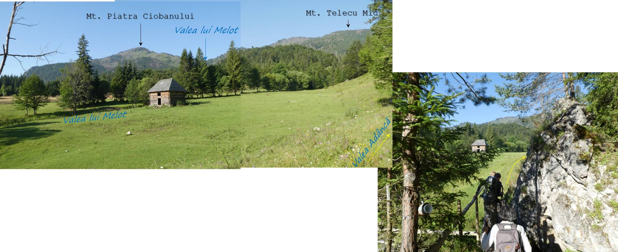 … și vom trece în Poiana Telecului Mare ! Chiar pe cumpăna de ape dintre cele două poieni – dar și dintre bazinele Bicăjelului și Oltului – se află gura strâmtă a unui aven, altă poartă de intrare a apelor meteorice în subteranul rețelei carstice cu debușeul în izbucul Apa Caldă !