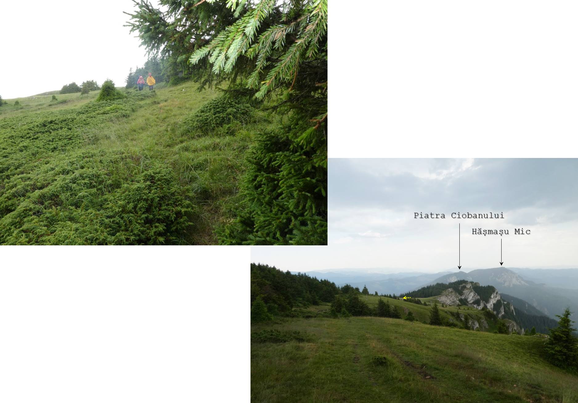 … pentru a prinde, la marginea pădurii urma, încă decelabilă, a unui vechi drum pastoral ce suia pe platoul somital al Hășmașului Mare, pe când acesta nu era, ca acum, aproape cu totul acoperit de pădure și se pășuna pe el !