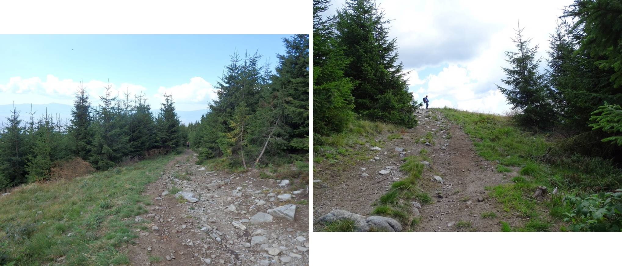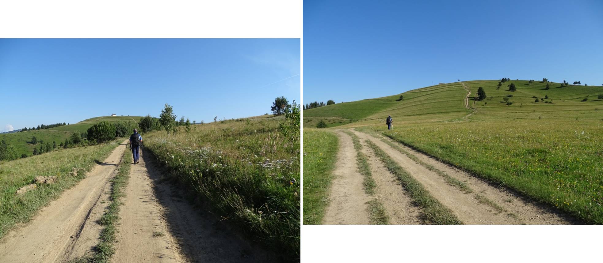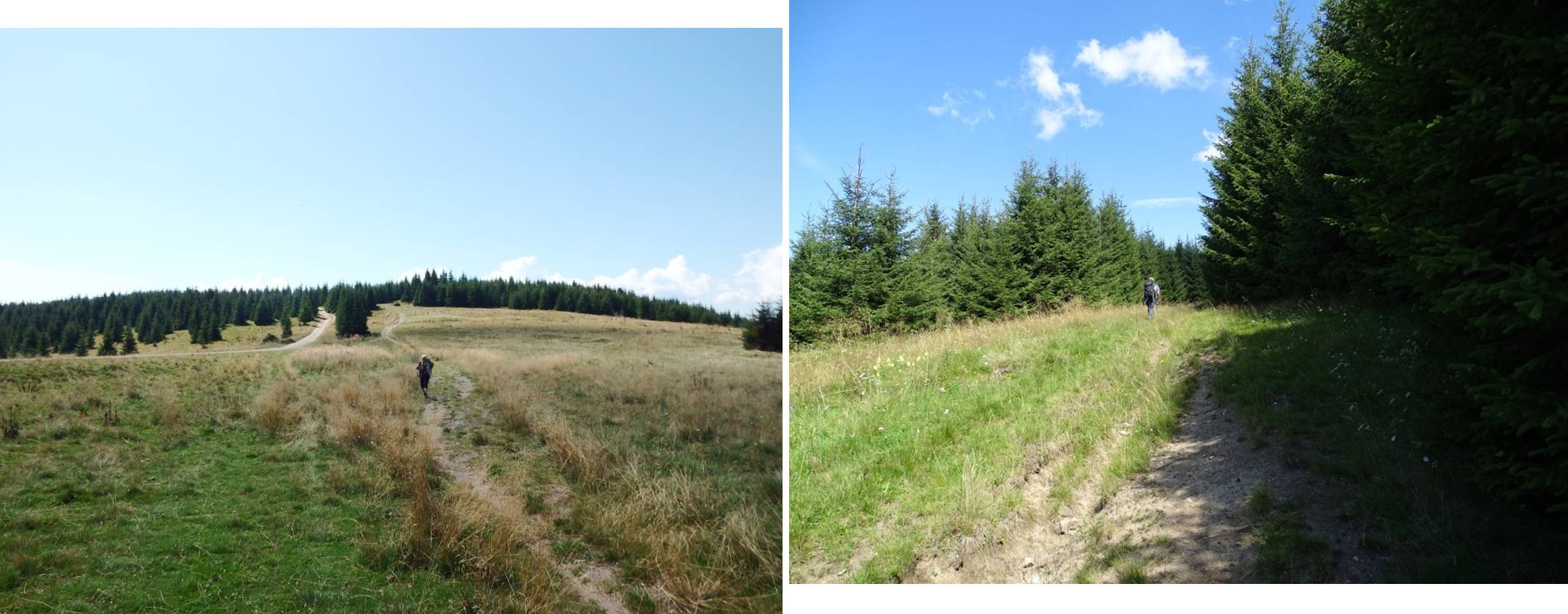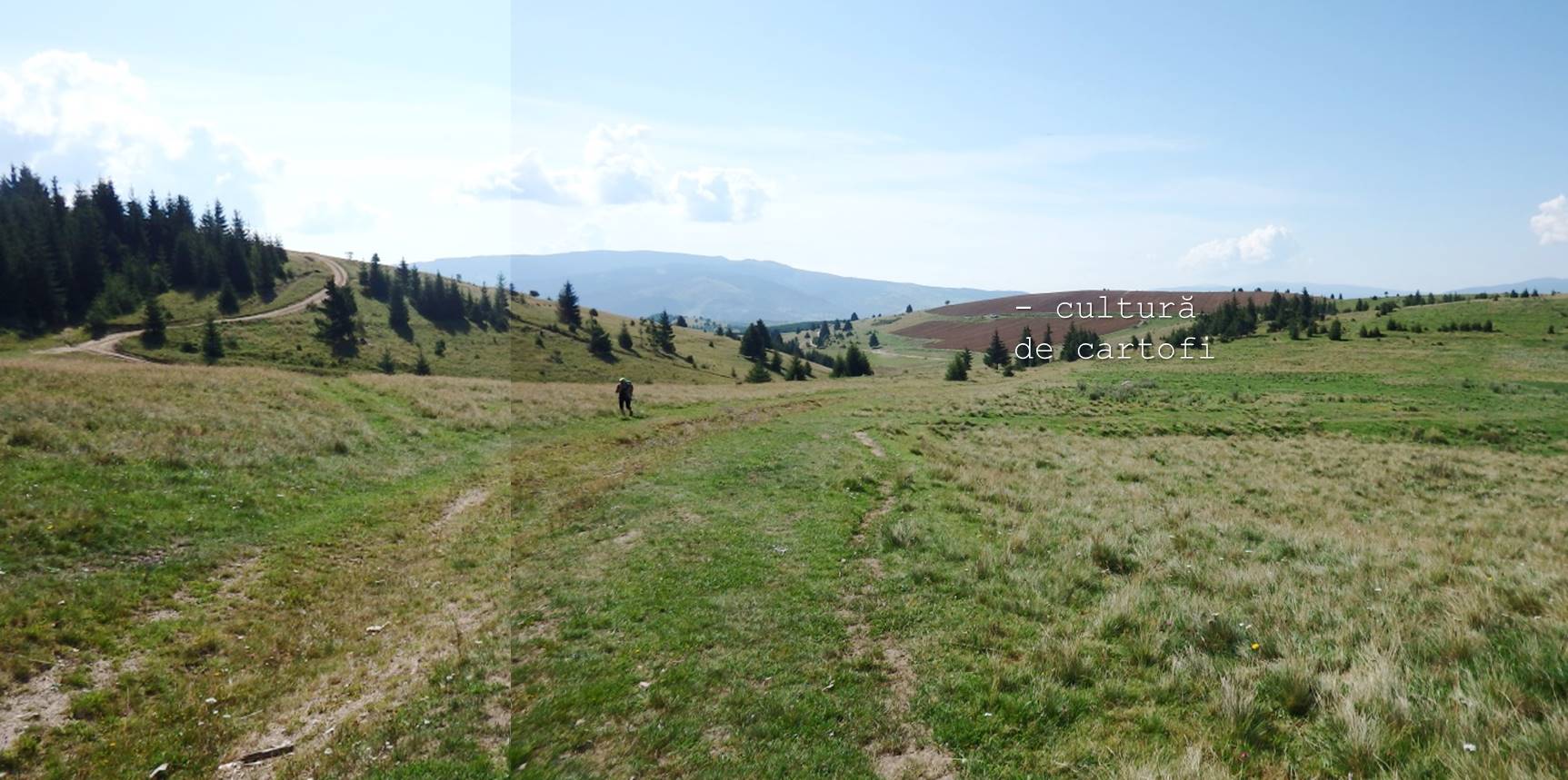 Trecem pe lângă un lot agricol cu o cultură, surprinzătoare, de cartofi (datorită altitudinii – cca 1.000 m), de unde drumul, în urcare, se despletește în mai multe brațe; …
