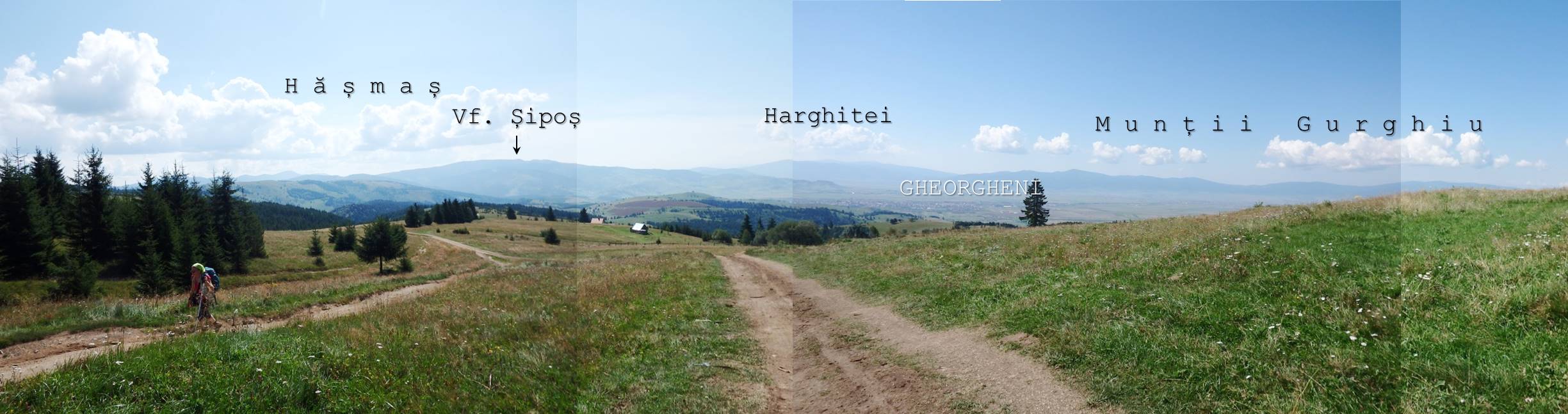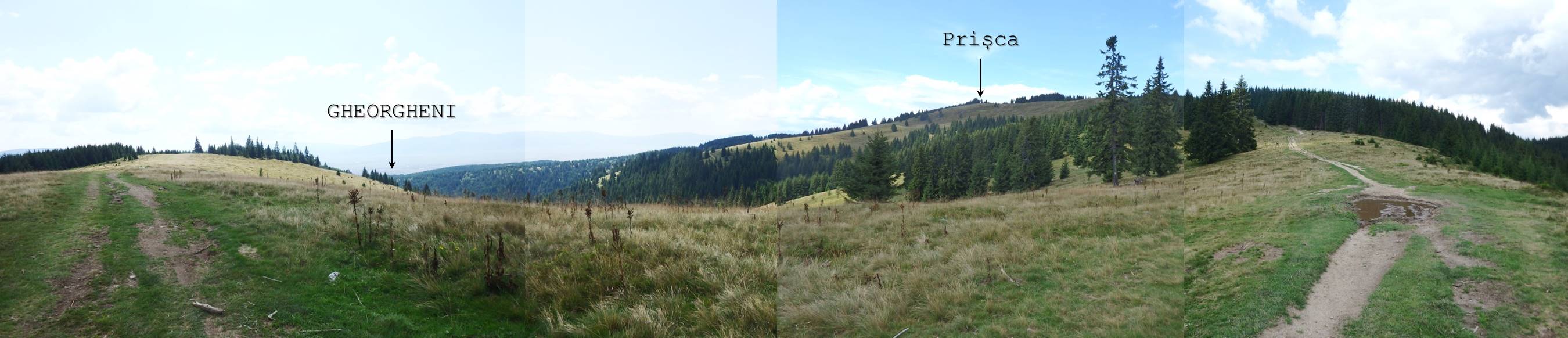 … și ne-am oprit la Giurgeu – pentru a cuceri cel mai înalt vârf al lor, Pirișca, de 1.544 m – (ziua 1 – vezi mai jos fotoreportajul), Gurghiu – tot pentru topul lor, Saca Mare, de 1.776 m -, tot Gurghiu – pentru a vedea Pietrele Coloape – (ziua 3 – click aici pentru fotoreportaj) și Călimanii – pentru Scaunul Domnului (ziua 2 – click aici pentru fotoreportaj). Din motive foarte dependente de noi – în drum spre traseul pentru Saca Mare, în Pasul Bucin, am constata că ne-am uitat actele la pensiune, așa că am făcut cale întoarsă – am renunțat la traseu, optând pentru unul mai scurt: la Piatra Vitoș din Hășmaș (ziua 4 – click aici pentru fotoreportaj) !