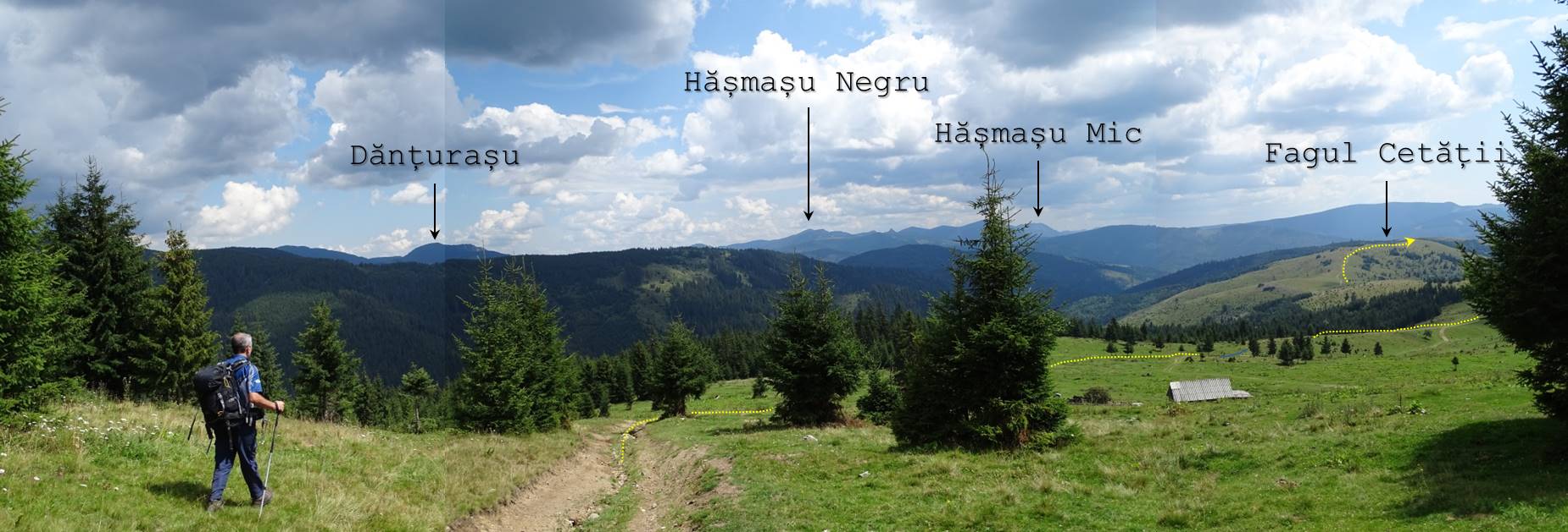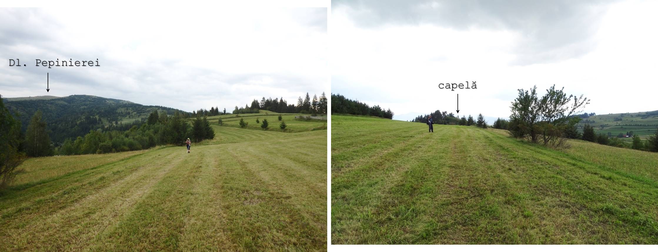 Suim ușor, strict spre nord-vest, pe drumul bordat de pădure în dreapta, dar cu largă deschidere spre stânga !