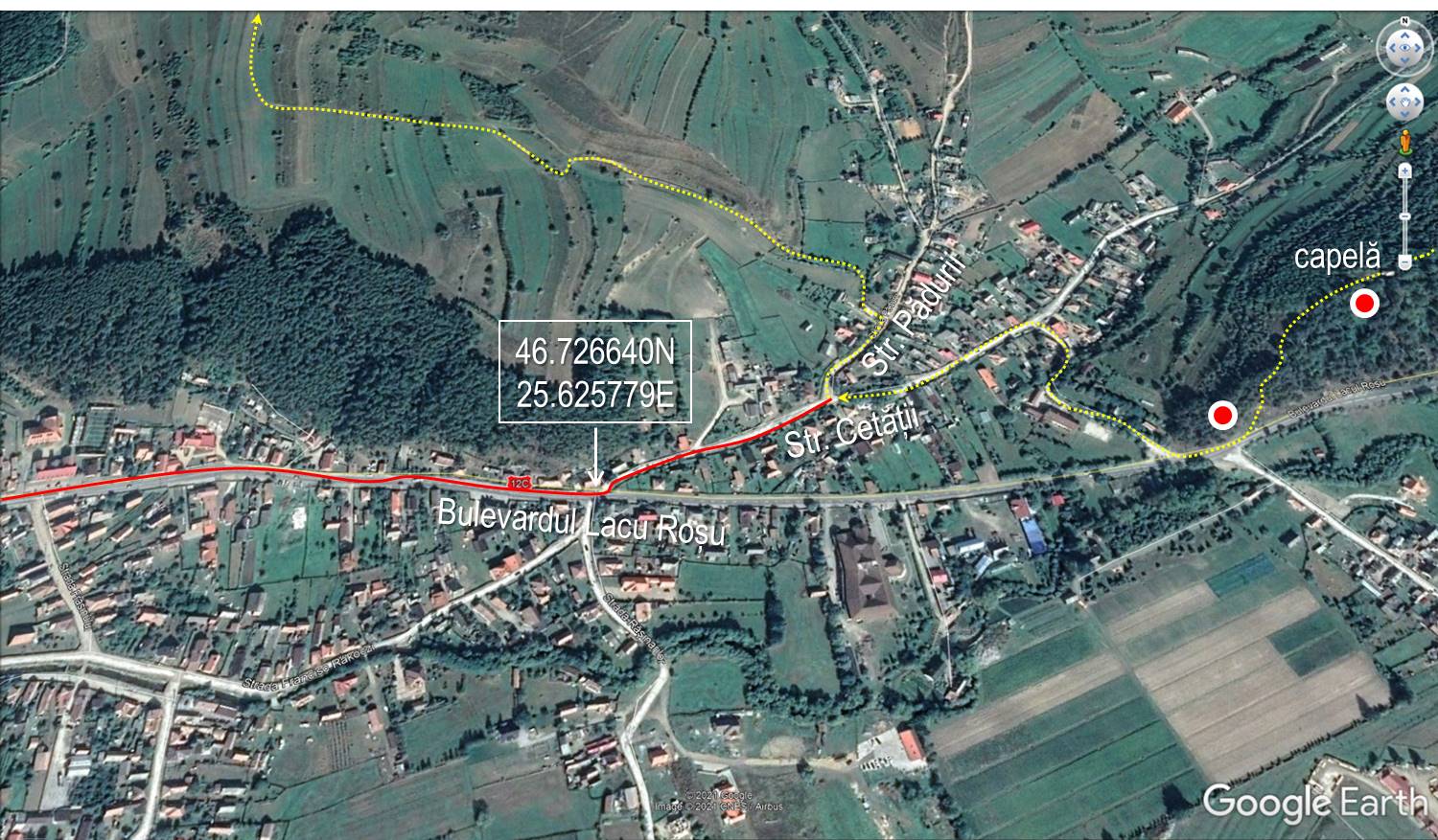 Ca să intrăm în traseu per pedes, … ieșim din Gheorgheni pe DN 12C, spre Lacu Roșu, și lăsăm mașina …