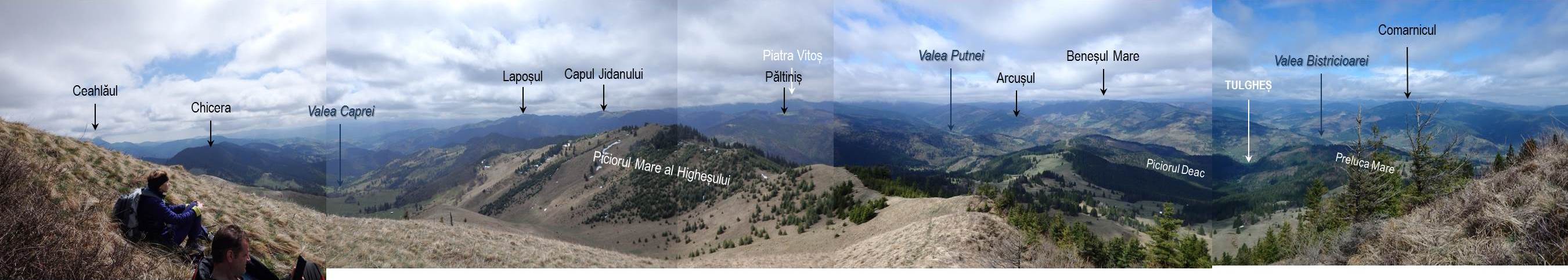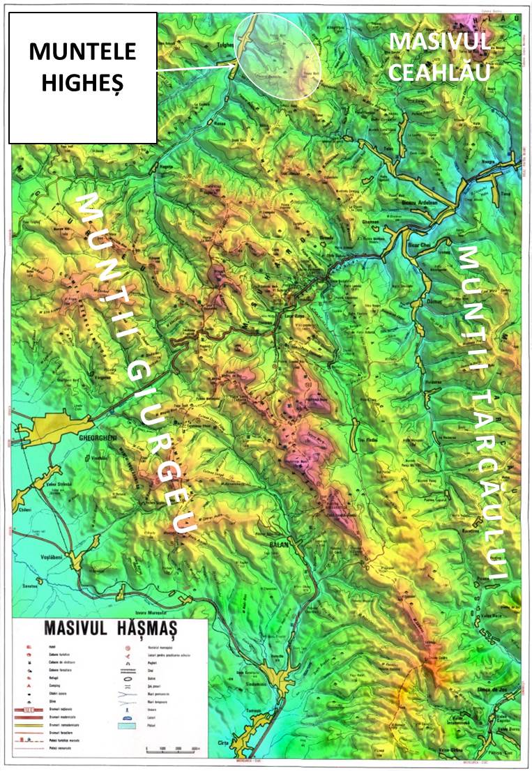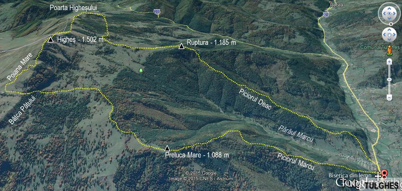 Traseu: Tulgheș (gura Marcului) – Piciorul Marcu – Preluca Mare – Poiana Mare a Higheșului – Vf. Higheș – Poarta Higheșului – Mt. Ruptura – Piciorul Deac – gura Marcului