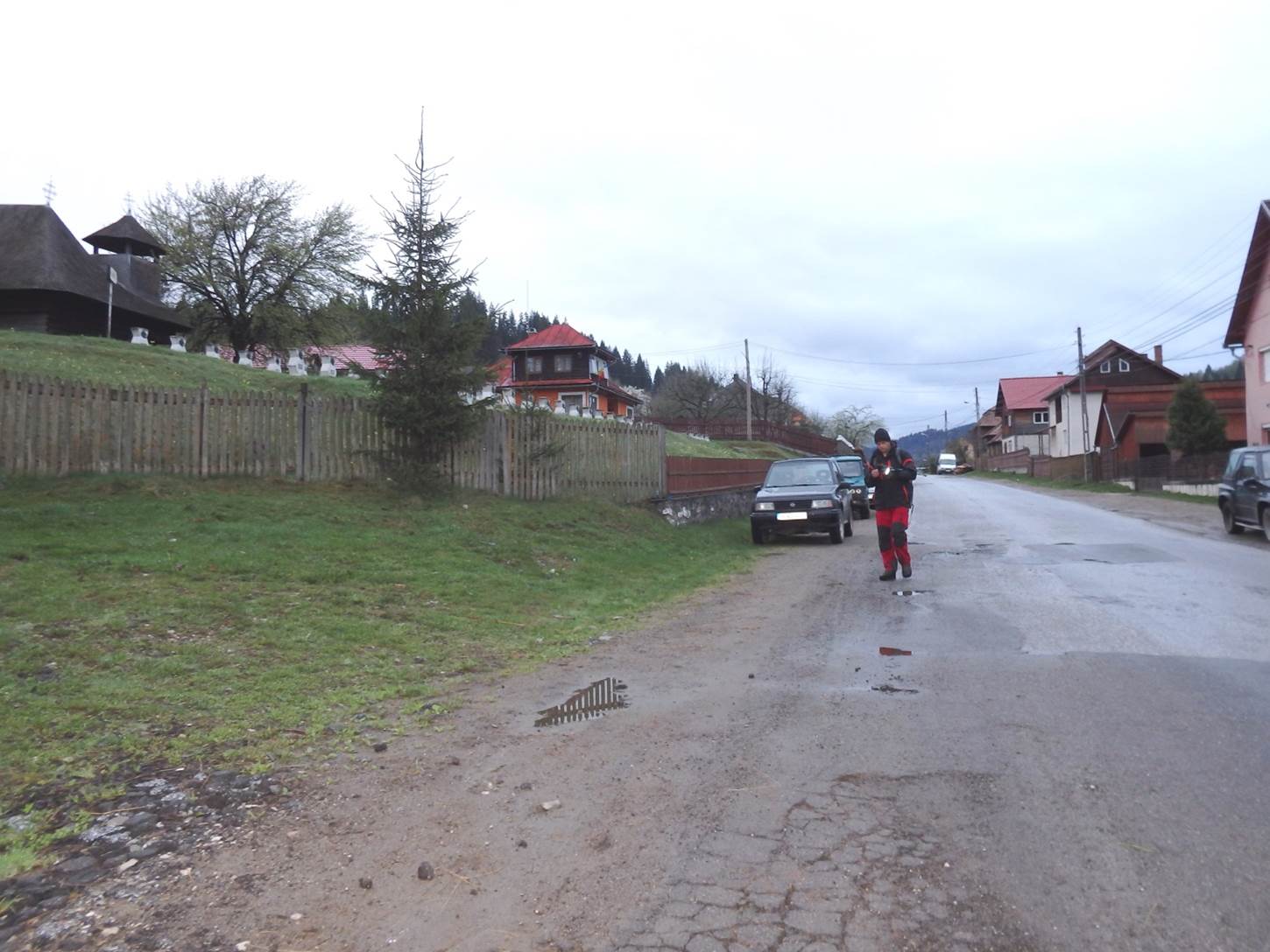 Intrăm în traseu din parcarea din fața bisericii de lemn din Tulgheș …