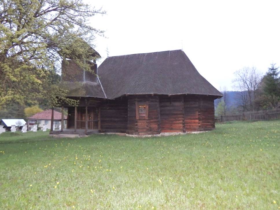 Biserica de lemn, monument istoric, datează din 1828 (se mai vehiculează anul 1815 și chiar 1790; o cruce veche poartă pe ea anul 1778, fiind însă legată de existența unui lăcaș anterior), tinda fiind adăugată mai târziu (probabil, 1840). În biserică se mai slujește doar cu ocazia sărbătorii hramului, Sf. Arhangheli, când ar putea fi văzute picturile de pe bolta naosului (vezi aici, fotografii cu acestea !). [Informații de pe http://ro.wikipedia.org/]