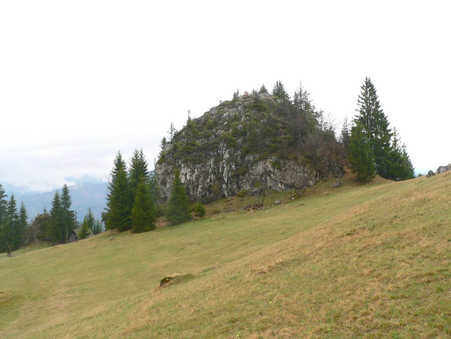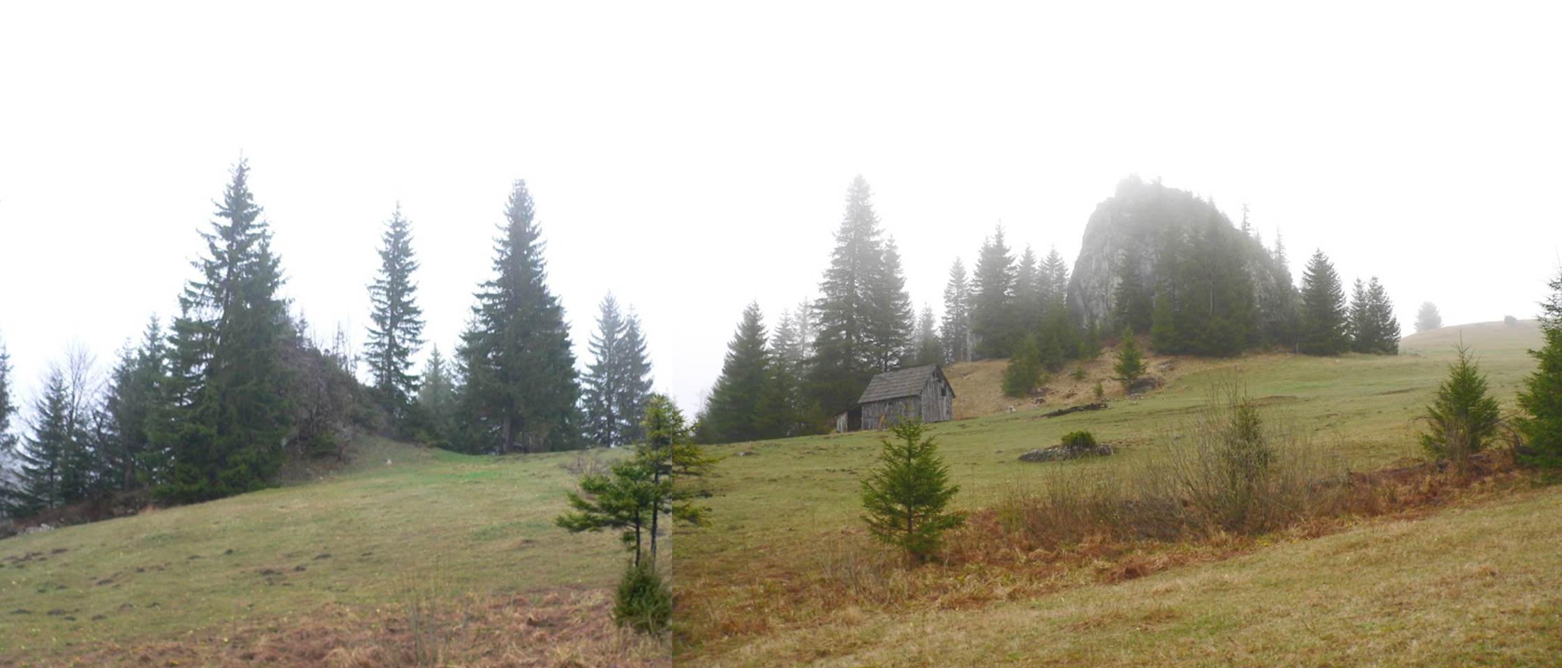 Dar, abia poienița de mai apoi, din spatele unei stânci rebele de calcar, …