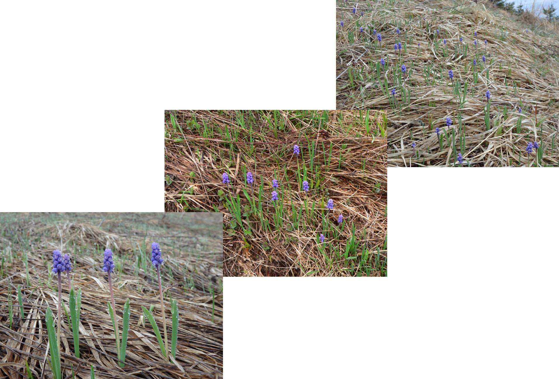 … pe o cărăruie-răzor cu porumbei (Muscari botryoides) !