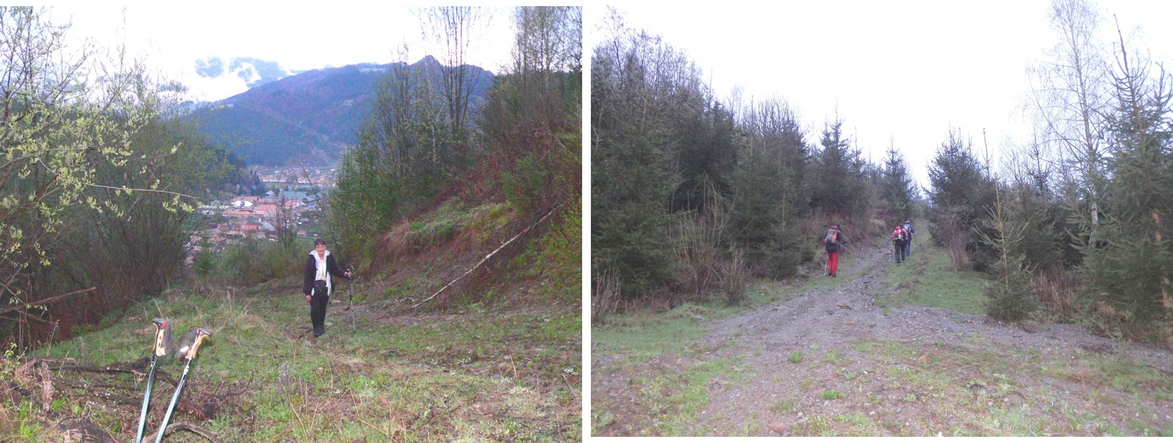 … ni se … taie de tot: traseul continuă de-a coasta (există un drum de căruțe – pe sub gardul din imagine – pe care noi l-am scurtcircuitat); …