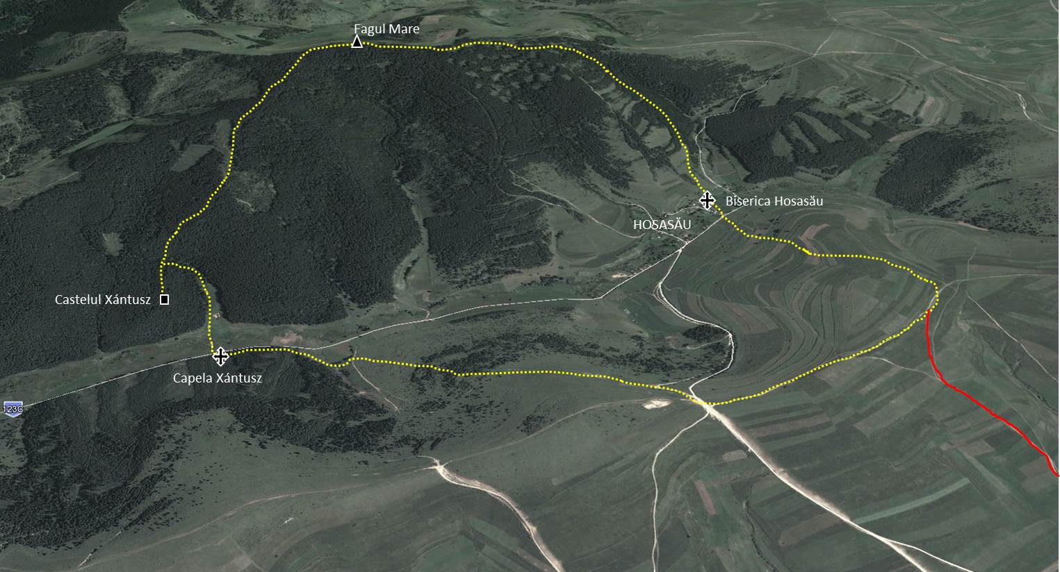Pasul 2: Misentea – Dl. Fagului – Capela Xántusz – Castelul Xántusz – Mt. Fagul Mare – Hosasău – Misentea