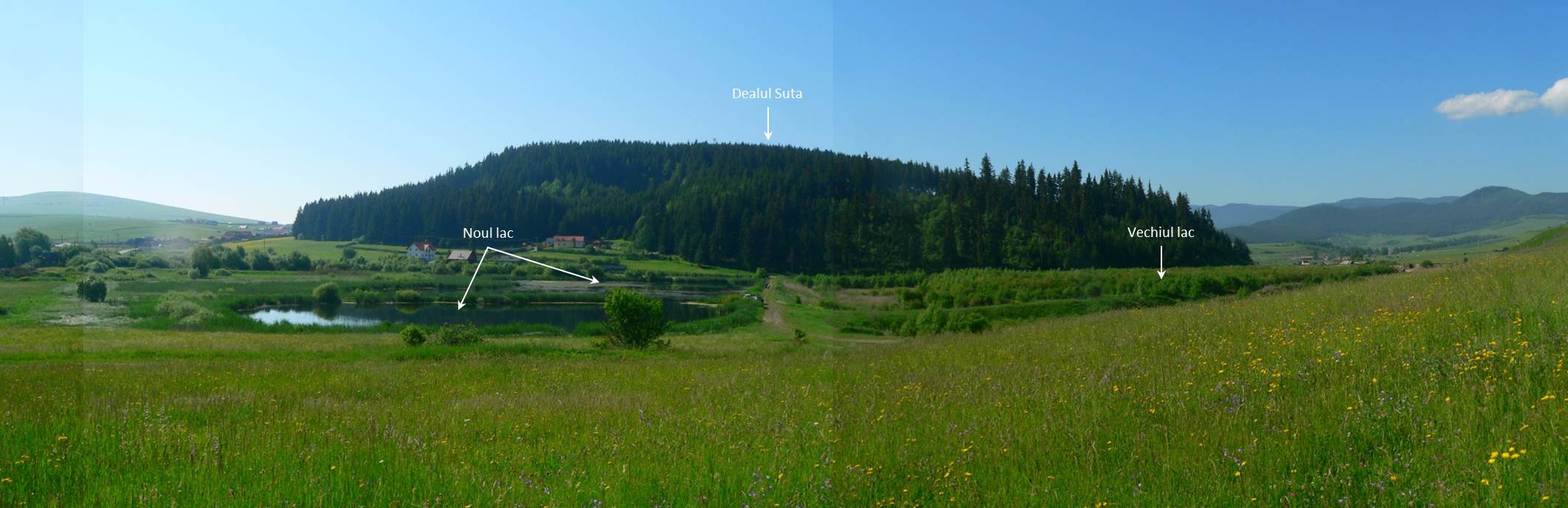 … actualul Lac Suta format prin ridicarea unui dig la coada fostului lac. Aici se poate ajunge, mai comod, după un ocol … nordic pe șoseaua asfaltată !