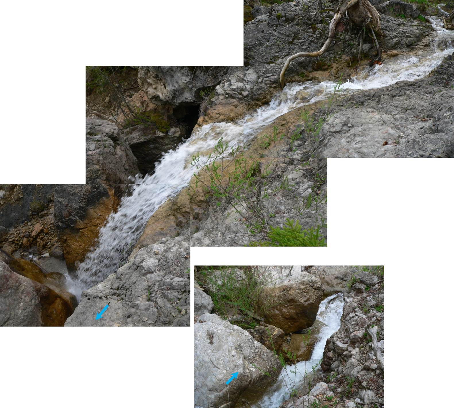 …fie azvârlită în goluri, peste praguri și blocuri de stâncă; suntem în zona micilor cascade mediane; …