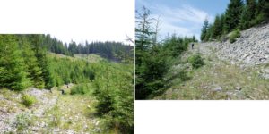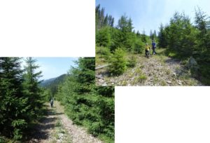 Spre obiectivul 3 al zilei, Dealul Pietriș: coborâm pe drumul de exploatare de pe valea Bolătăului atât timp ( câteva minute) cât acesta nu … coboară; imediat ce o face îl părăsim urmând o potecuță …