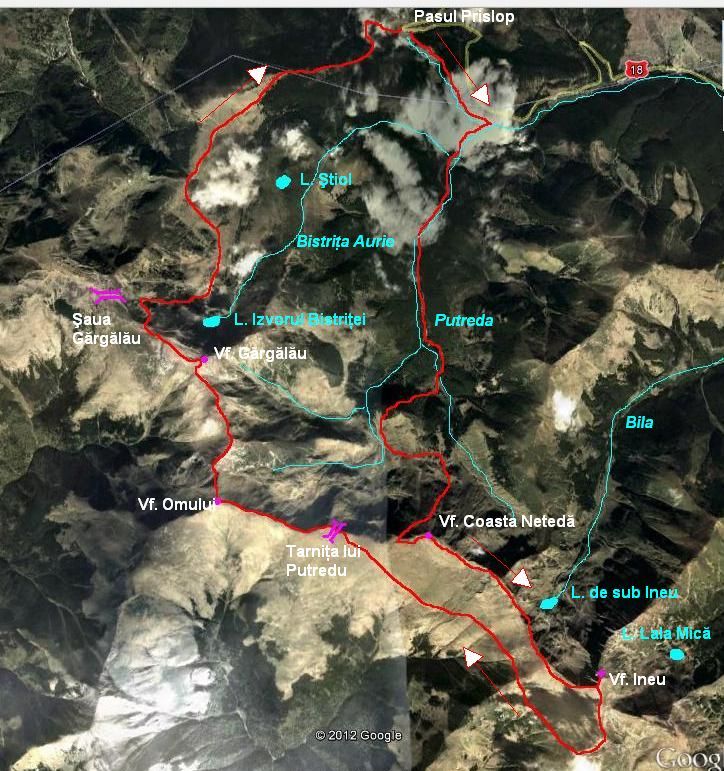 … și creasta principală între Ineu și Gărgălău cu traseele noastre la venit și la întors; …