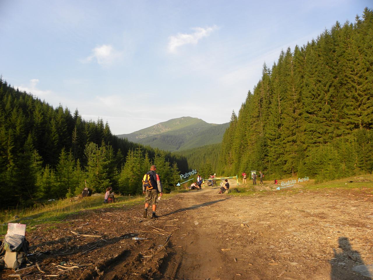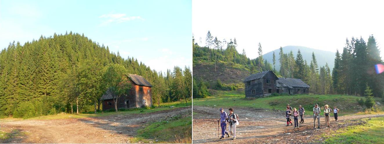 Aşa că în 5 minute suntem deja în poiana fostelor cabane ale Cantonului Silvic Putreda, …