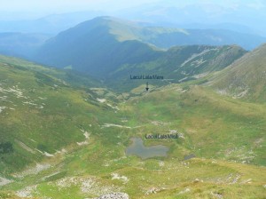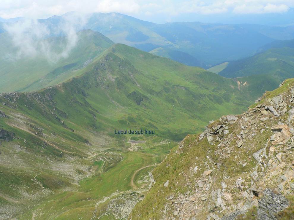 – în cealaltă parte (vest), căldarea Bilei cu Lacul de sub Ineu (aproape sec !) …