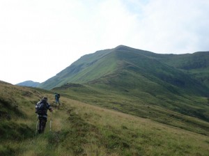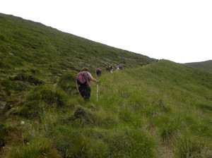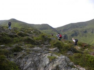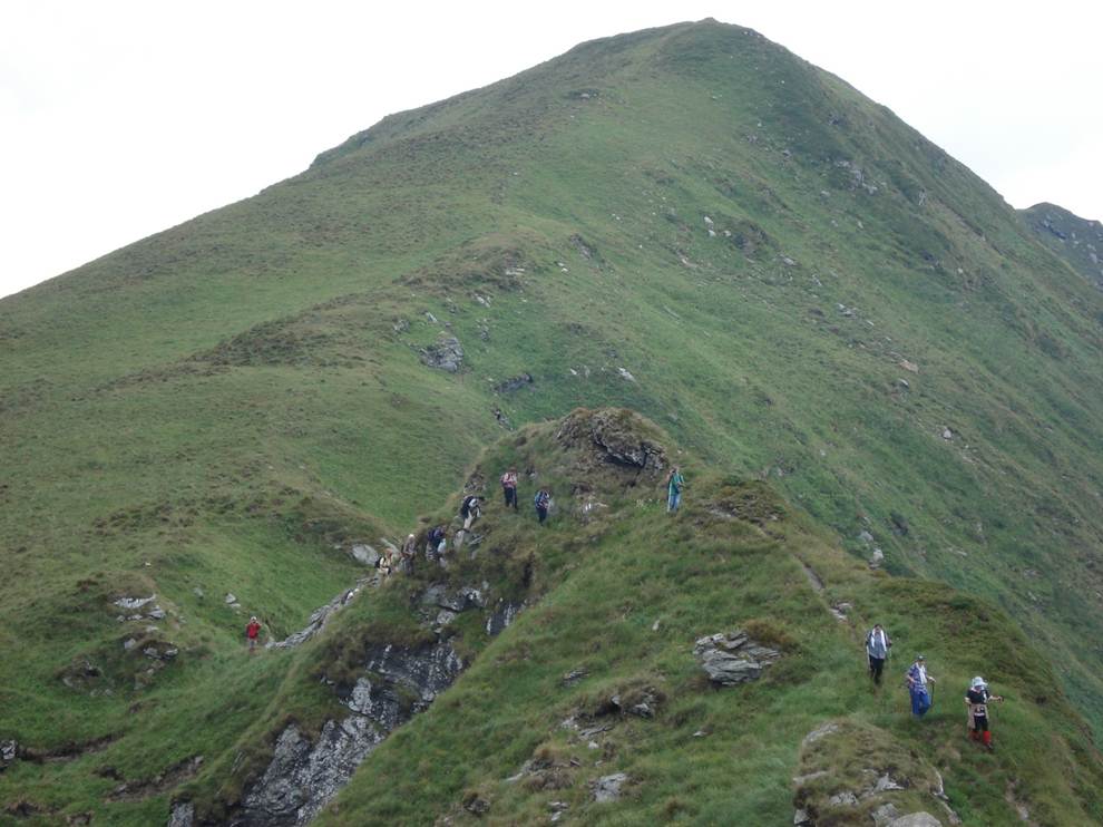 Urcăm spre Ineu pe muchia sa sudică, ce are panta cea mai moderată !
