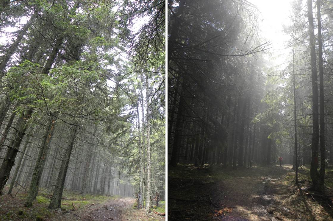 Ceața anulează, în parte, oportunitatea oferită de o tăietură replantată de a vedea spectaculoasa creastă a Hășmașului !