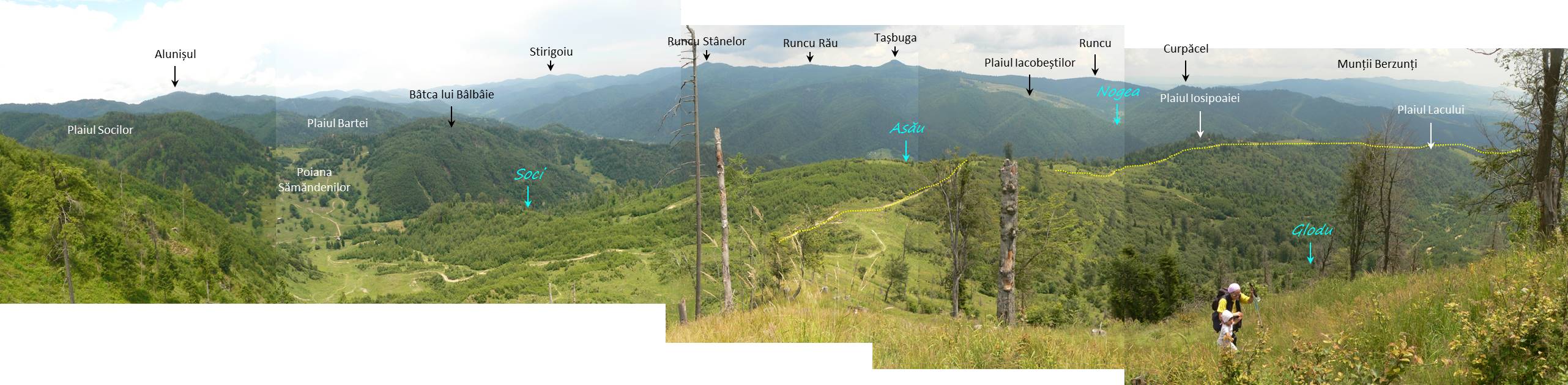 Traseu: Asău – Piatra Uriașului – Lacul Asău – Dealul Muncel – Osoiu – Interfluviul Ciungi-Glodu – Asău