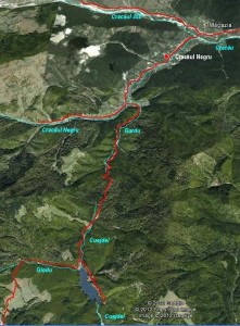 Descrierea făcută acestei porţiuni de traseu are la bază doar studiul hărţilor, pentru că nu a fost parcursă de noi. O vom face, probabil, într-un viitor apropiat.